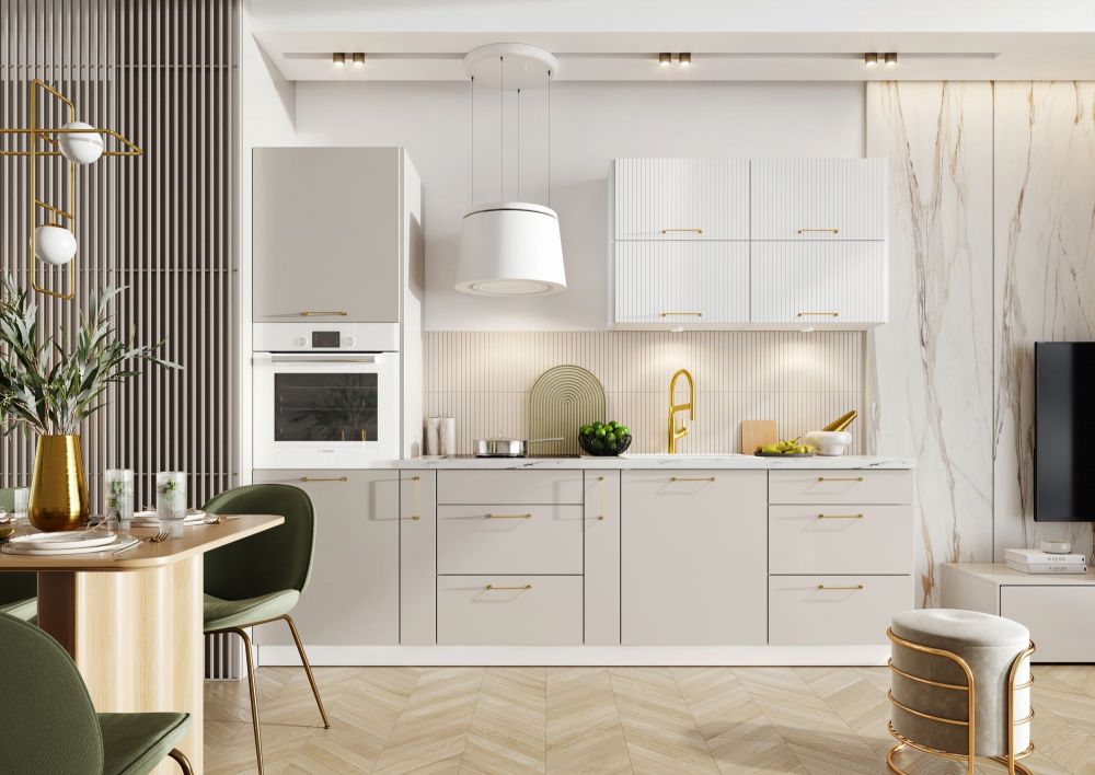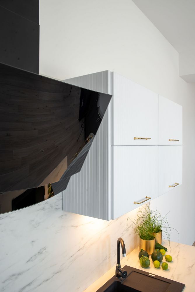 Virtuvės specifikacija – balti juodi žirneliai, šviesiai ir tamsiai pilka | Virtuvės stilius – modernus | Fasado tipas: Laminuota plokštė / MDF / Lakuota MDF plokštė | Matmenys: plotis [cm]>30,4, aukštis [cm]>36