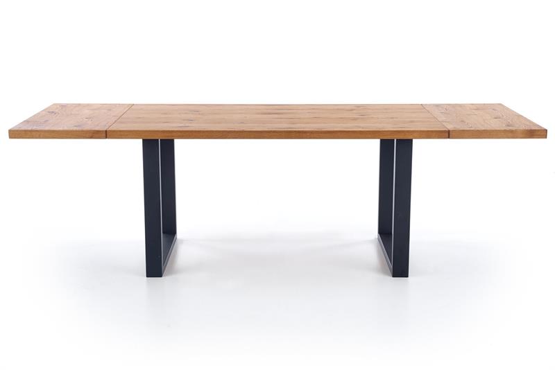 Matmenys: 160÷250/90/76 cm, prailginamas stalas, medžiaga: stalviršis – faneruota lenta, kraštai – medžio masyvas, kojos – milteliniu būdu dažytas plienas, spalva: stalviršis – šviesus ąžuolas, kojos – juodos