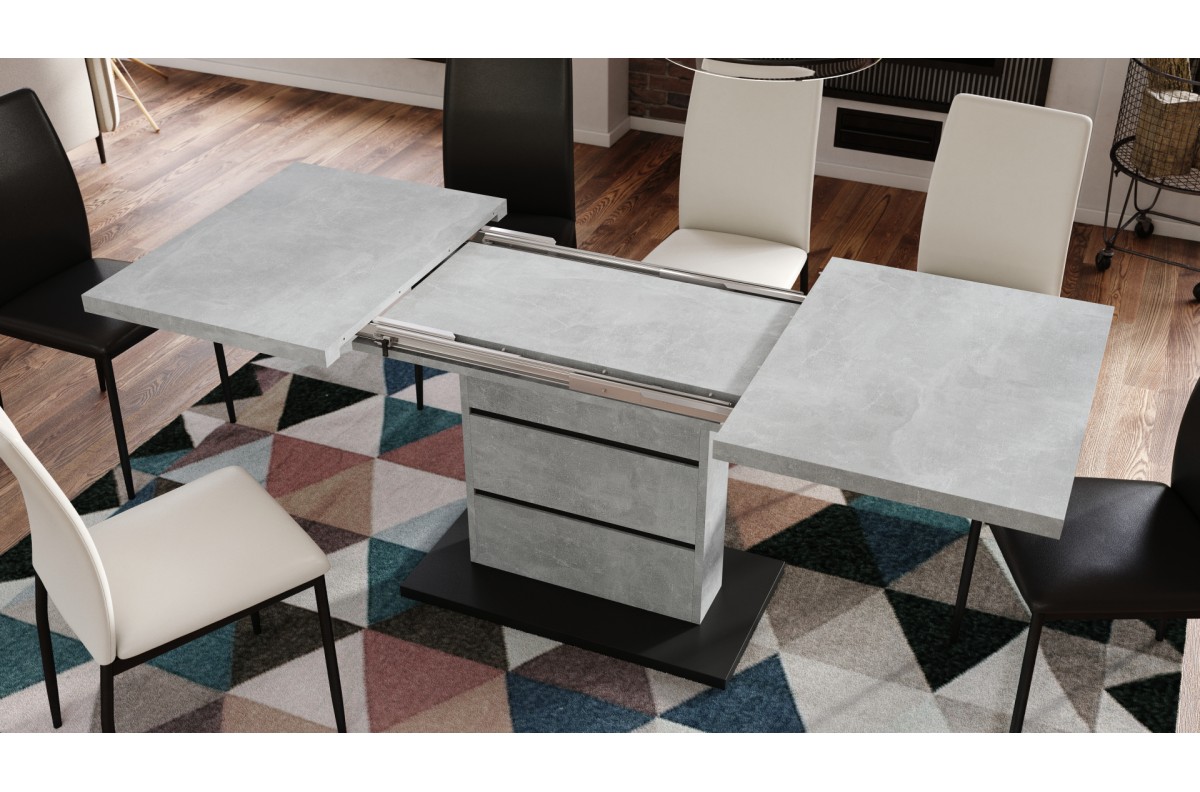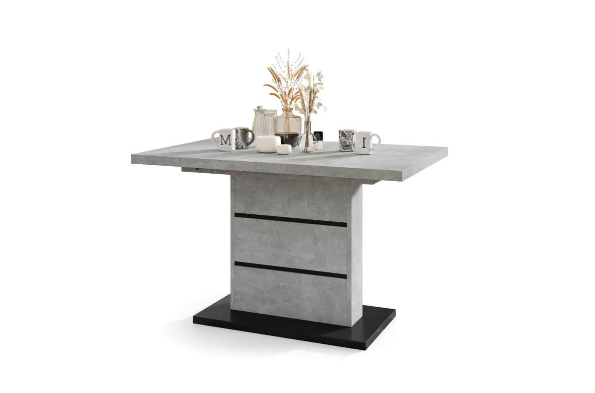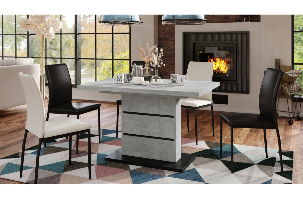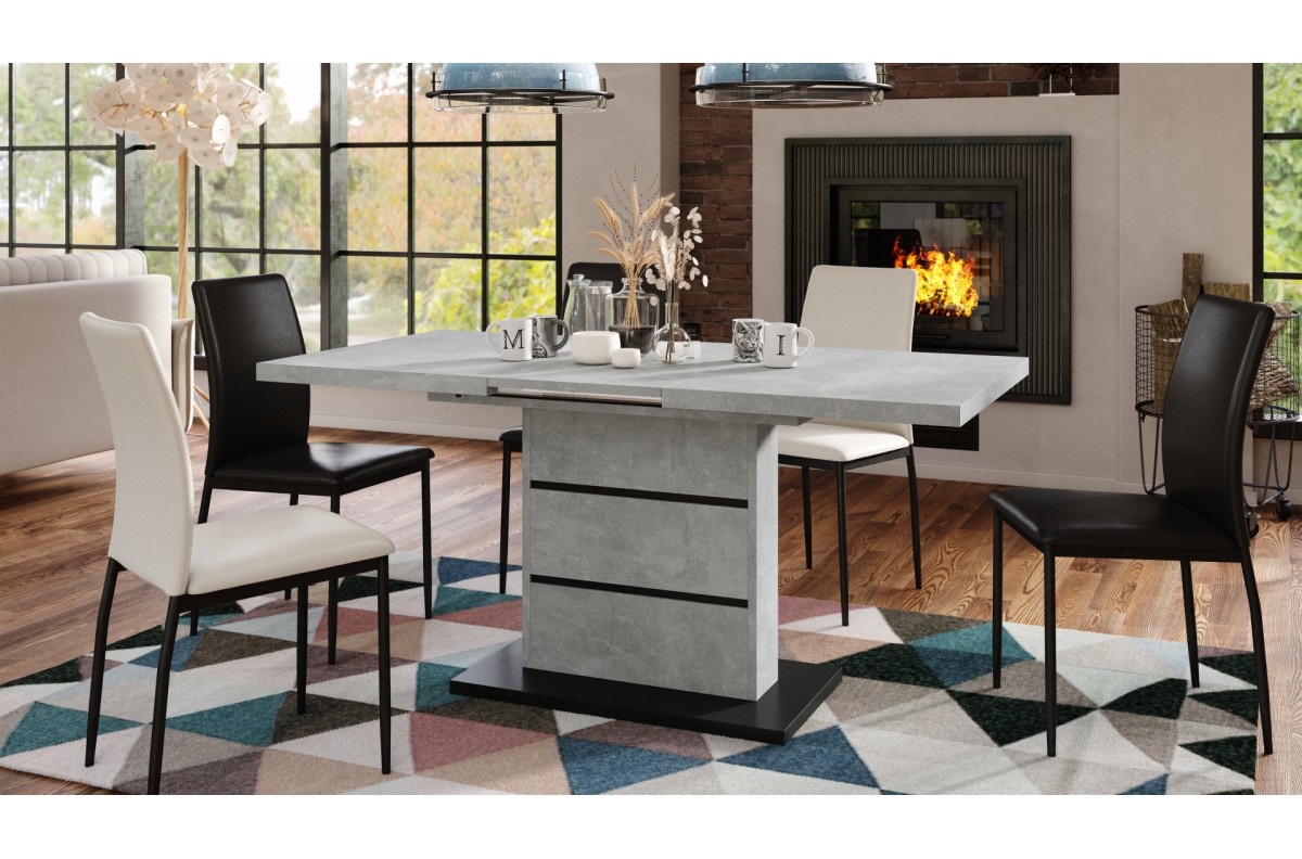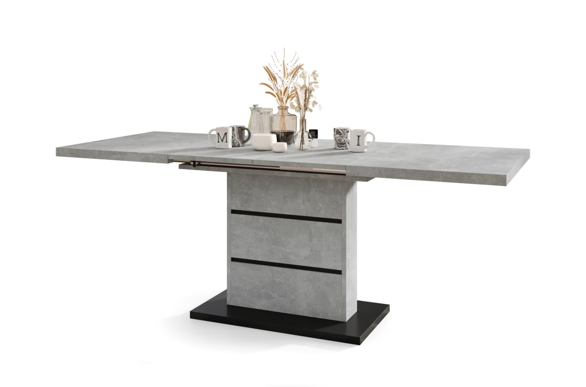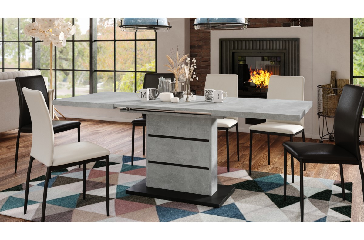 PIANO šviesaus betono ateljė / matinės juodos spalvos – MODERNUS stalas, prailginamas iki 200 cm!