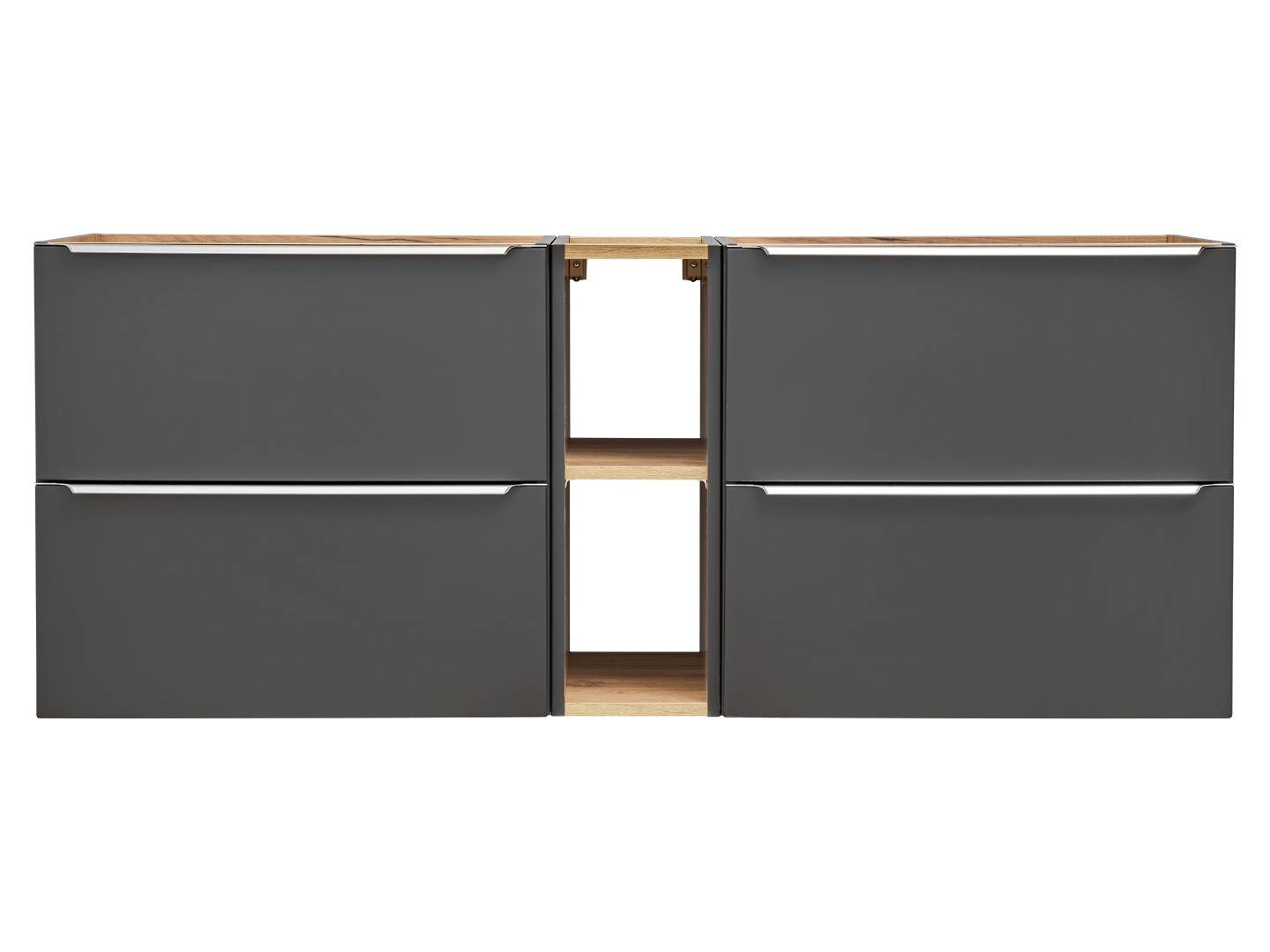 Grafito korpusų ir fasadų derinys kartu su ąžuolinėmis spintelių vidinėmis detalėmis suteikia kolekcijai unikalų charakterį. Geometrinę baldų formą pabrėžia aštrios rankenos. Kolekcijoje siūlomas platus formų pasirinkimas, įskaitant funkcionalią spintelę su stalviršiu, suteikiančią papildomos naudingos erdvės. Patogumą didina švelniai užsidarančios stalčių bėgelės ir vyriai, leidžiantys jiems užsidaryti tyliai ir švelniai. Modernus šios kolekcijos akcentas – galimybė apšviesti stalčius praustuvų spintelėse.