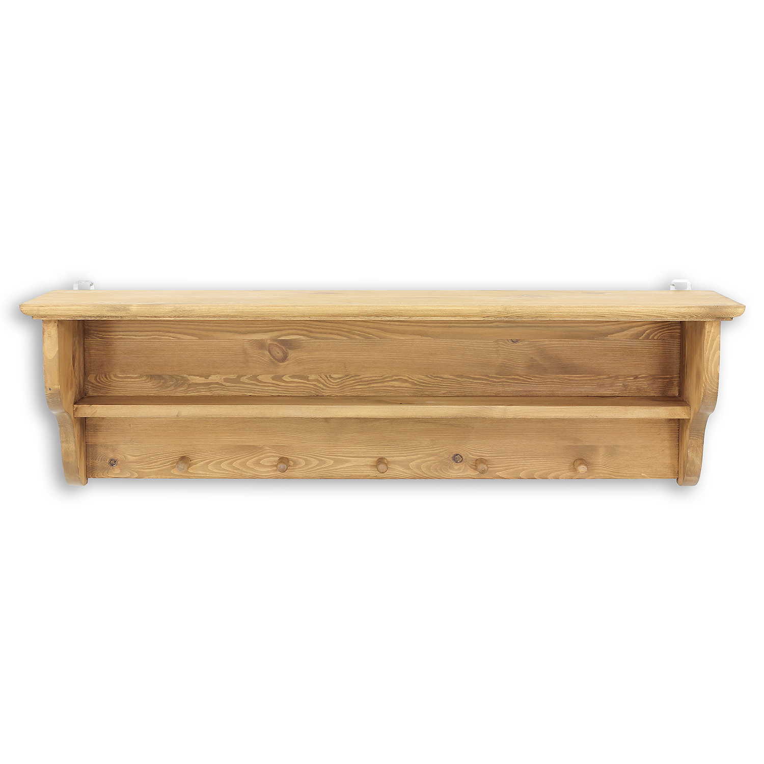 PK700 vaškuota pakabinama lentyna, sukurta kaimiško stiliaus ir pagaminta vien iš pušies masyvo, susideda iš atviros lentynos ir penkių medinių pakabų. Ji puikiai tinka prieškambaryje kaip papildoma viršutinių drabužių saugykla. Lentyna dekoruota unikaliais raižiniais. Matoma medienos tekstūra išryškina natūralios medienos grožį. PK700 suteiks bet kokiam interjerui unikalią atmosferą, kupiną šilumos ir jaukumo. Jos funkcionalumas labai palengvina daiktų laikymą.