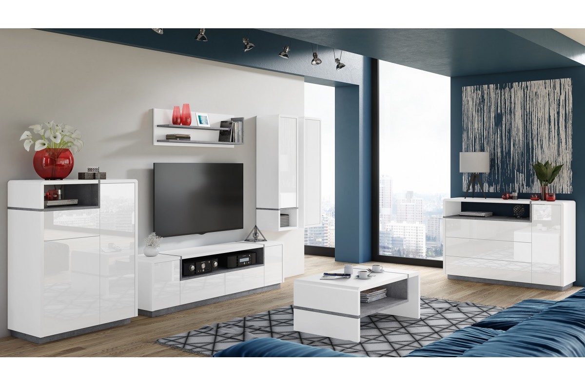 Pakabinama lentyna FOLK PW-110 matinė balta + tūkstantmečio betonas – MODERNI SVETAINEI