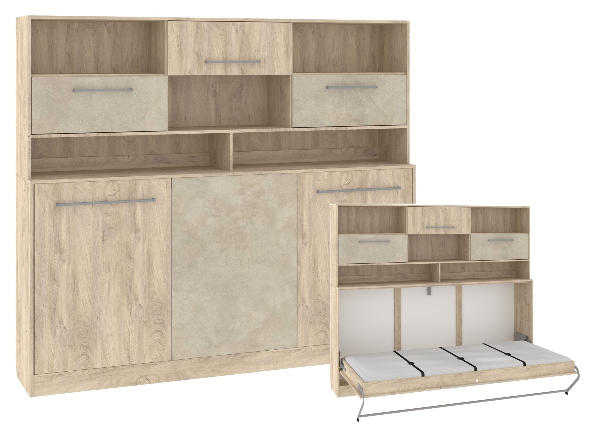 Būkite pirmas aprašęs “Sieninė lova, sulankstoma, paslėpta lova 90×200 ERGO + pagrindas, kraštų imitacija, migdolo pilka”