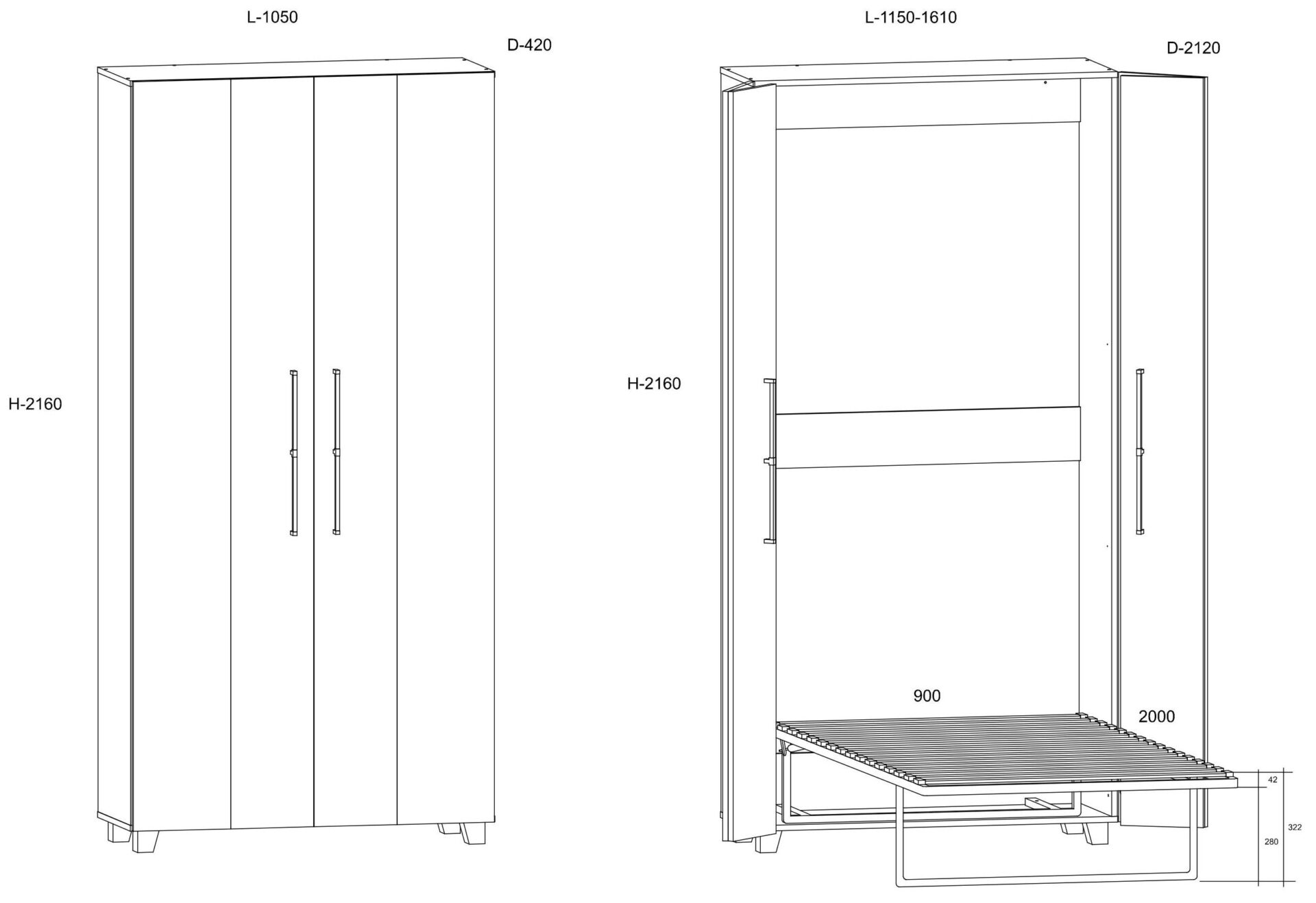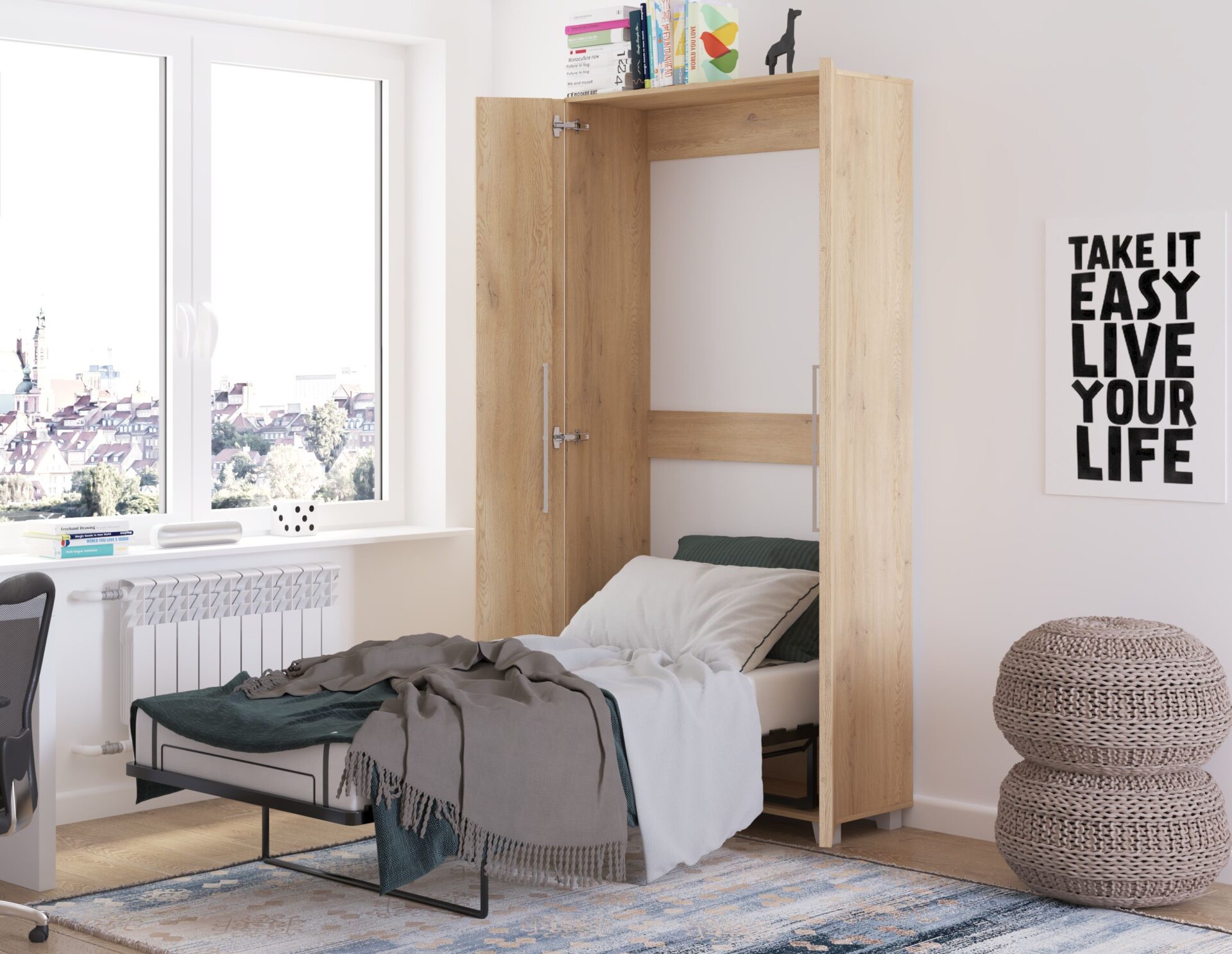 TEDDY sieninė lova be čiužinio – sieninė lova 90 cm, 16 mm plokštė, ABS kraštas, maksimalus čiužinio aukštis 15 cm, spalva: kremonos ąžuolas