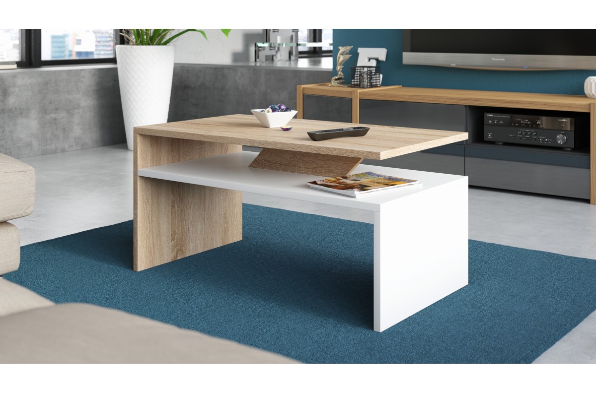 PRIMA Sonoma ąžuolo/matinės baltos spalvos – MODERNUS KAVOS STALIUKAS