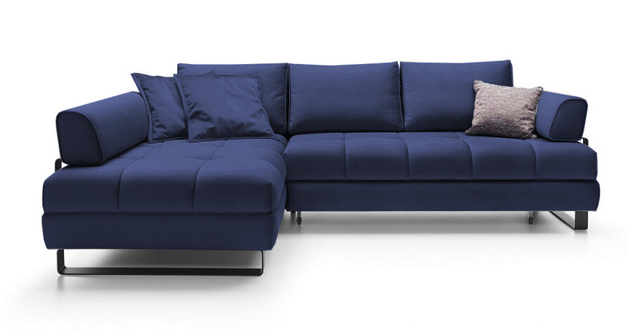 Kampinė sofa „Havana“ – tai baldas, kuris puikiai papildys modernią svetainę. Ryškus griežtų metalinių kojelių ir subtilių šoninių formų derinys, o dygsniuota sėdynė suteikia elegancijos. Šis modelis taip pat turi delfino miegojimo funkciją ir praktišką patalynės skyrių. Papildomos savybės: įmontuotos vingiuotos spyruoklės ir plačios nugaros pagalvėlės. Ši kampinė sofa „Havana“ yra aptraukta tamsiai mėlynu „Solar“ audiniu ir šiuo metu siūloma patrauklia akcine kaina.