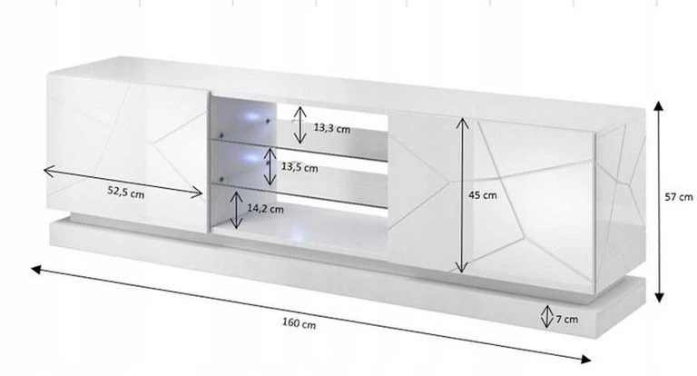 QIU 160 cm televizoriaus staliukas, baltas + LED