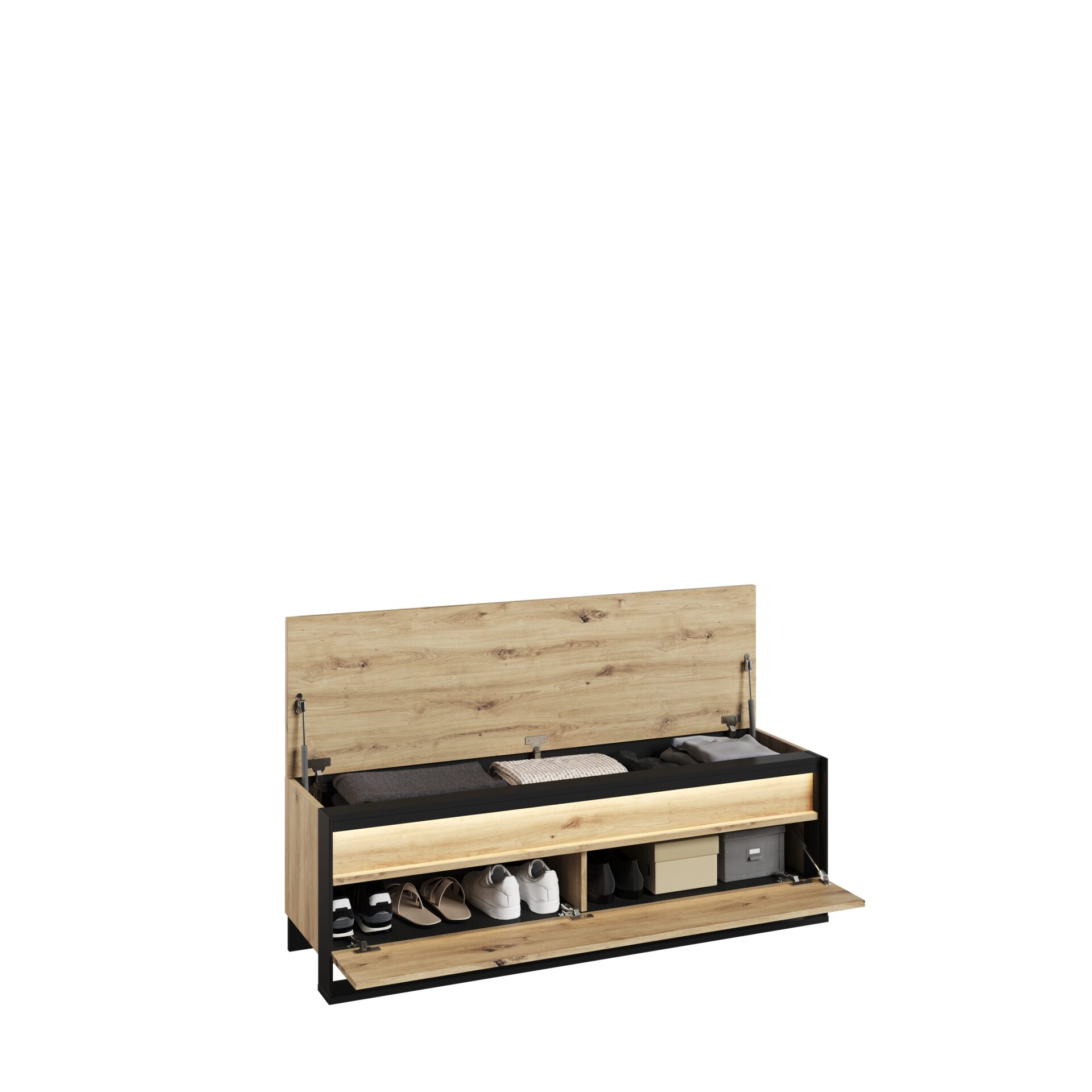Ieškote madingo ir funkcionalaus sprendimo savo prieškambariui? Mūsų elegantiška batų spintelė su sėdyne ne tik padės palaikyti tvarką prieškambaryje, bet ir suteiks jūsų interjerui stiliaus bei elegancijos. Mūsų elegantiška batų spintelė su sėdyne derina praktiškumą ir estetiką. Įrengtos dvi laikymo vietos, joje telpa daugybė batų porų, užtikrinant tvarką ir organizuotumą jūsų prieškambaryje. Be to, sėdynė spintelės viršuje leidžia patogiai sėdėti apsiaunant ir nusiaunant batus. Ši QUANT kolekcijos batų spintelė išsiskiria elegantišku dizainu. Sukurta kruopščiai, ji suteikia jūsų interjerui išskirtinį akcentą. Nesvarbu, ar jums labiau patinka modernus minimalizmas, ar klasikinis stilius, mūsų elegantiška batų spintelė su sėdyne puikiai papildys jūsų interjerą. Be to, ji aprūpinta atmosferiniu LED apšvietimu, kuris sukuria malonią atmosferą. Jei ieškote elegantiško, funkcionalaus ir stilingo baldo savo prieškambariui, mūsų elegantiška batų spintelė su sėdyne pateisins visus jūsų lūkesčius.