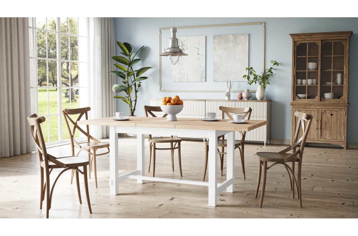 RANDAL Sonoma ąžuolas/matinė balta – PROVANSO STILIUS IŠTRAUKIAMAS STALAS SVETAINEI/VALGOMAJAM/VIRTUVEI