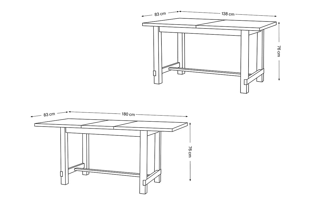 PLOTIS 138 cm / 180 cm, GYLIS 83 cm, AUKŠTIS 76 cm, PAVIRŠIUS Matinis, STILIUS Provanso, SVORIS SU PAKUOTE 42 kg, KITA Gaminys skirtas savarankiškam surinkimui su pateiktomis instrukcijomis
