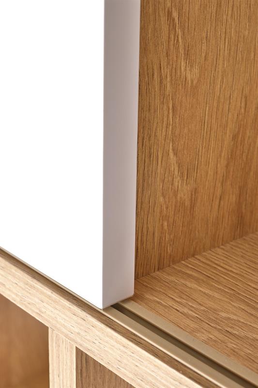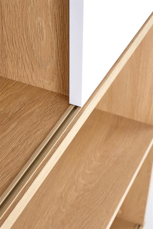 Matmenys: 110/33/180 cm, stumdomi fasadai, medžiaga: laminuota medžio drožlių plokštė, spalvos: medaus ąžuolas / balta matinė