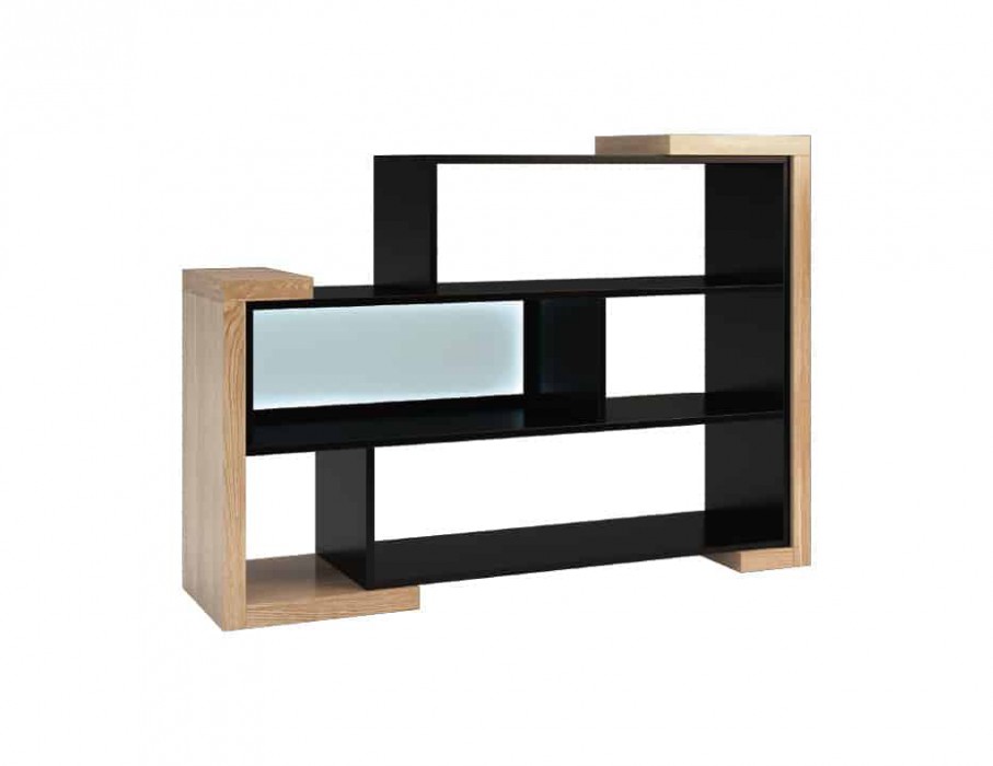 „Corino“ knygų lentyna, žema, laisvai stovinti knygų lentyna su apšviesta kairiąja niša, „Mebina“