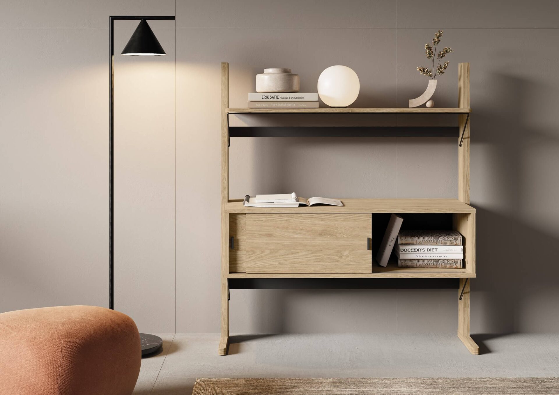 Dizainas: dizainerio sukurta žema lentyna biurui, darbo kambariui, svetainei ar miegamajam
