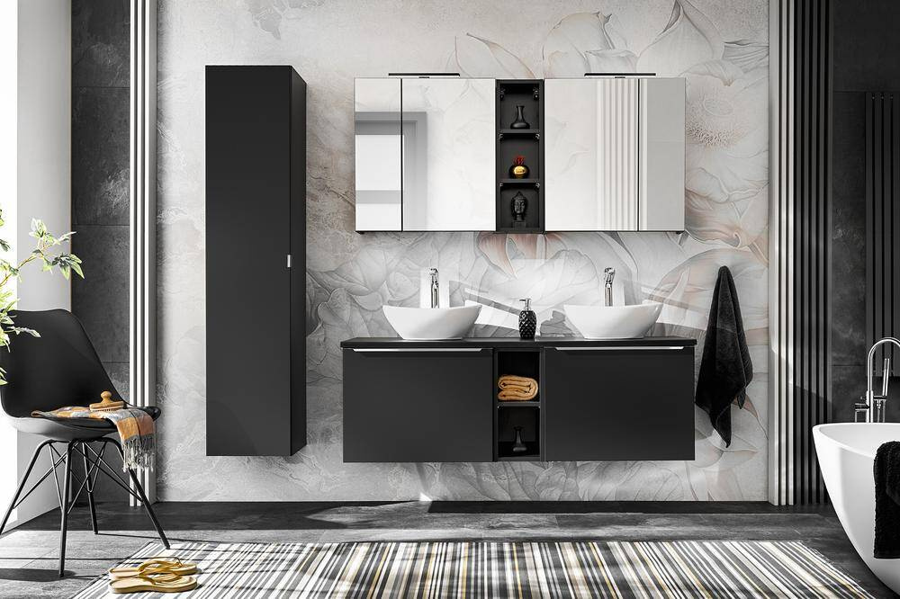 SANTA FE BLACK lentynų blokas žavi ne tik savo estetika, bet ir praktiškumu. Pakabinamas dizainas taupo grindų plotą, o tai ypač svarbu mažuose butuose. Be to, juodas laminuotas paviršius lengvai valomas – tai savybė, kurią vertina tie, kurie vertina tvarką.