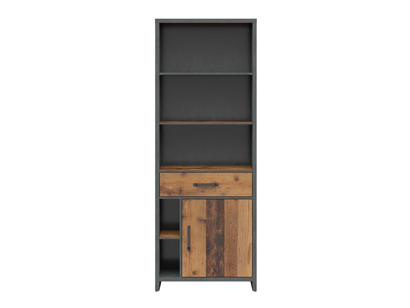 „Weston“ knygų spinta – stilingas ir funkcionalus dizaino elementas. Augantis vaikas keičia ne tik asmenybę, bet ir skonį bei stilių. „Weston“ jaunimo baldų kolekcija atitinka šiuos poreikius, o šios serijos knygų lentyna yra ne tik praktiškas sprendimas, bet ir ryškus dizaino elementas. Lofto stiliaus „Weston“ knygų lentyna puikiai derina funkcionalumą su galimybe eksponuoti mėgstamus daiktus. Penkios atviros lentynos – puiki vieta apdovanojimams, knygoms ar stalo žaidimams, viskas gražiai eksponuojama. Praktiškas stalčius leidžia laikyti smulkius daiktus, o spintelė leidžia paslėpti viską, ko nebūtinai reikia eksponuoti. Knygų lentynos dizainą išskiria pastorinti šonai ir viršus, taip pat tvirtos rankenos, suteikiančios jai minimalistinį charakterį. Meniško ąžuolo fasadai harmoningai papildo tamsų „Matera“ korpusą, sukurdami darnią visumą. Knygų lentynos matmenys (75 x 40 x 200,5 cm) puikiai tinka mažoms erdvėms, nes padeda išvengti perkrovos ir efektyviai išnaudoti turimą erdvę. „Weston“ knygų lentyna gali tilpti šalia lovos, spintos ar stalo, todėl jaunimo kambaryje ji tampa funkcionaliu ir stilingu elementu. Galima rinktis iš dviejų spalvų (senovinio stiliaus pušies / Matera ir artisan ąžuolo / Matera), todėl galite ją pritaikyti pagal savo individualius pageidavimus ir interjero stilių. Trumpai tariant, „Weston“ knygų lentyna siūlo ne tik erdvę daiktams susidėti; ji taip pat suteikia jaunimo kambariui dizaino akcentą. Tai puikus sprendimas tiems, kurie vertina ir funkcionalumą, ir estetiką interjero dizaine.