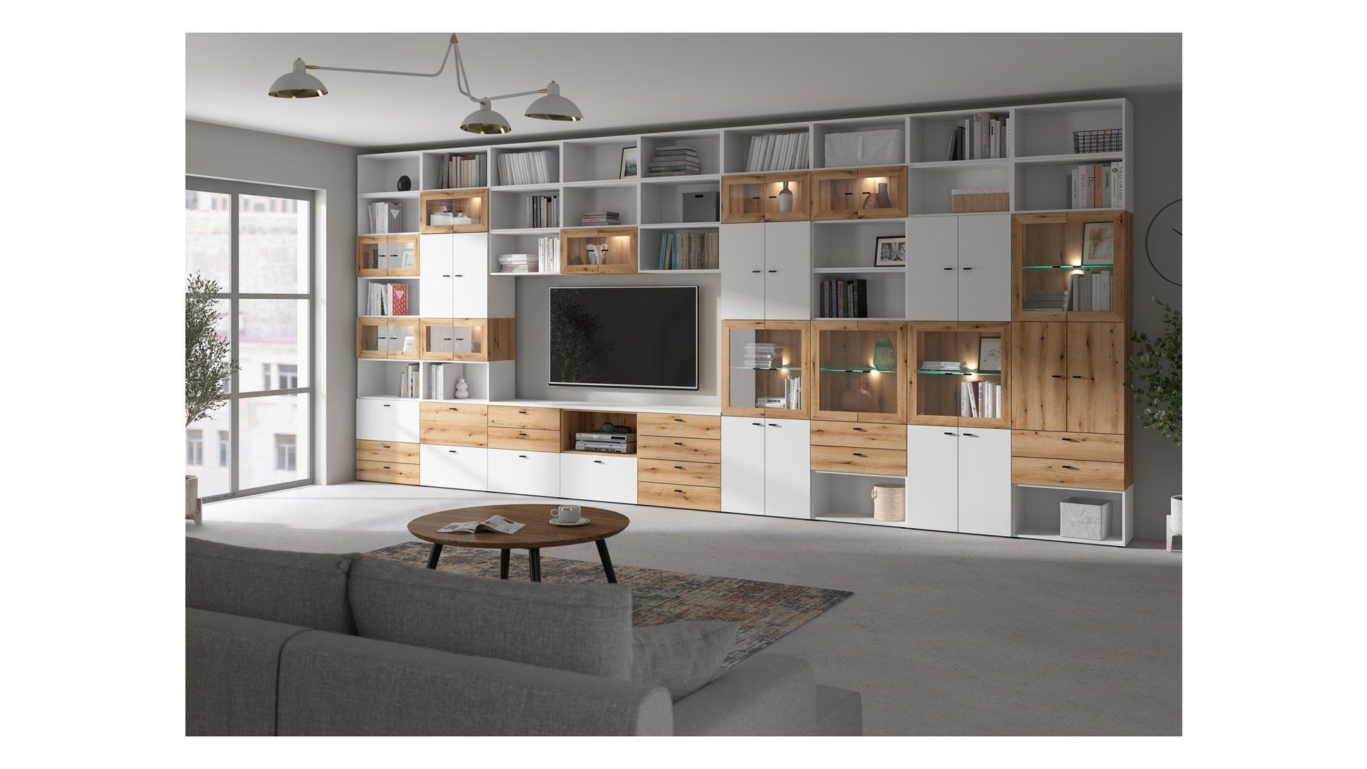 „System 64“ kubinė atvira lentyna – modulinis interjeras pagal jūsų stilių. „System 64“ kolekcija – tai modernus modulinių baldų komplektas, kurio plotis – 64 cm, o aukštis – 32 arba 64 cm. Visų elementų gylis – 35 cm, todėl juos galima laisvai derinti į komodas, knygų lentynas, vitrinas ar televizoriaus staliukus. Modulius galima sudėti atskirai, pakabinti ant sienos arba sudėti vienas ant kito, sukuriant harmoningas kompozicijas. „System 64“ yra trijų spalvų – baltos, ąžuolo ir grafito – todėl baldai gali papildyti įvairius interjero stilius. Be to, pasirinktos vitrinos gali būti aprūpintos LED apšvietimu, o 64, 128 ir 192 cm ilgio stalviršiai leidžia sukurti darnius, elegantiškus komplektus. Funkcionalumas ir konfigūracija: „System 64“ kubinė atvira lentyna yra modernus ir praktiškas baldas, kuris bet kokiam interjerui suteikia lengvumo, tvarkos ir stiliaus. 64 x 32 x 33 cm matmenys ir maksimali 10 kg apkrova daro lentyną idealiai tinkančią svetainei, biurui, miegamajam, prieškambariui ar vaikų kambariui. Atviras dizainas suteikia lengvą prieigą prie laikomų daiktų ir puikiai eksponuoja knygas, dekoracijas ar žaislus. Patvari medžio drožlių plokštės konstrukcija užtikrina stabilumą ir ilgaamžiškumą, o tiksli apdaila suteikia lentynai estetišką išvaizdą iš bet kurio kampo. Dėl modulinės konstrukcijos ją galite pastatyti kaip vieną vienetą arba derinti su kitais „System 64“ moduliais, sukurdami funkcionalius ir stilingus išdėstymus. Specialios savybės: matmenys: 64 x 32 x 33 cm, atvira konstrukcija, užtikrinanti greitą prieigą prie turinio, maksimali apkrova: 10 kg, vientisa medžio drožlių plokštė, užtikrinanti patvarumą ir stabilumą, estetiška apdaila, matoma iš visų pusių, galimos spalvos: balta, „Evoke Oak“, grafito, galima montuoti: stovint arba pakabinant, lengvai derinama su kitais „System 64“ moduliais, lengvas, modernus dizainas, papildantis įvairius išdėstymus, pridedami sieniniai tvirtinimo elementai, spalva: balta. Santrauka: „System 64 Cube“ atvira lentyna yra funkcionalus ir stilingas modulis, kurį galima pritaikyti bet kurioje erdvėje. Jis puikiai derina modernią formą su praktiškumu, leisdamas sukurti darnų, organizuotą interjerą pasirinkta spalva.
