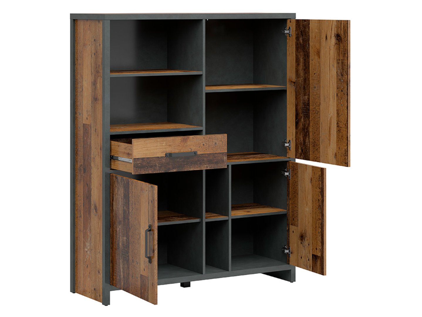 „Weston“ knygų spinta – funkcionalumas ir stilius kiekviename kambaryje. Įrengiant augančio vaiko kambarį, svarbu, kad baldai būtų ne tik praktiški, bet ir atspindėtų individualų jaunojo vartotojo stilių bei charakterį. „Weston“ knygų spinta siūlo ne tik erdvią daiktų laikymo vietą, bet ir dizaino elementą, suteikiantį kambariui minimalistinį, modernų pojūtį. Turėdama keturias atviras erdves, vieną praktišką stalčių ir tris įvairaus dydžio spinteles, „Weston“ knygų spinta siūlo daug vietos vadovėliams, dailės reikmenims, dokumentams ir žaislams laikyti. Tai taip pat puiki vieta eksponuoti mėgstamas knygas ar apdovanojimus. Išskirtiniai knygų lentynos dizaino elementai, tokie kaip pastorintos šoninės sienelės, stalviršiai ir tvirtos rankenos, suteikia jai neapdorotą charakterį, kuris puikiai papildo lofto stilių. Meniško ąžuolo fasadų ir tamsaus „Matera“ korpuso derinys sukuria darnią visumą, suteikdamas knygų lentynai modernumo. Knygų lentynos matmenys (120 x 40 x 150 cm) leidžia ją pastatyti tiek didesniame kambaryje, tiek mažesniame paauglio kambaryje. Ji gali būti centrinis baldas, pastatoma šalia lovos, stalo ar spintos. „Weston“ knygų lentyna puikiai dera su kitais kolekcijos elementais, sukurdama darnią paauglio kambario išvaizdą. Dviejų spalvų variantų (senovinio stiliaus pušis/matera ir meniškas ąžuolas/matera) pasirinkimas leidžia pritaikyti knygų lentyną pagal savo konkrečius pageidavimus ir kambario charakterį. Trumpai tariant, „Weston“ knygų lentyna yra ne tik funkcionalus daiktų laikymo baldas, bet ir dizainerio akcentas, suteikiantis augančio vaiko kambariui modernaus stiliaus ir tvarkos.