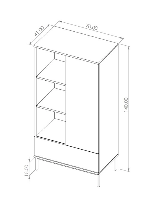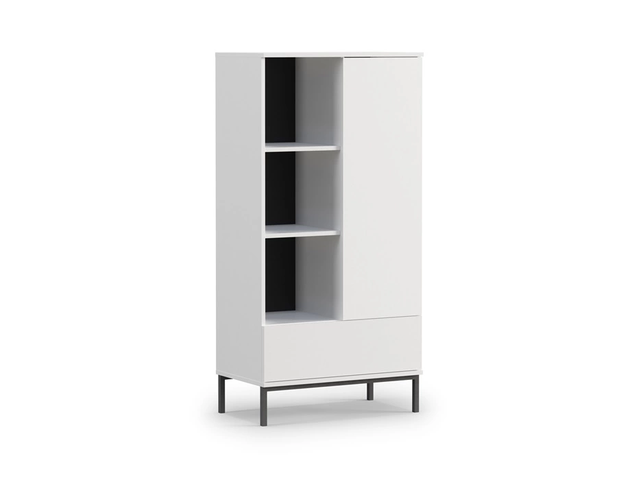 Knygų spinta turi vienas dureles, vieną stalčių ir atviras lentynas. „Tutti“ knygų spinta su stalčiumi yra funkcionali ir utilitarinė, siūlanti daug vietos daiktams susidėti. Nesenstanti balta knygų lentynos spalva gražiai dera su kitomis spalvomis, todėl „Tutti“ knygų lentynos puikiai tinka kaip svetainės ar vaikų kambario knygų lentynos. Knygų lentynos su lentynomis taip pat puikiai tinka kaip biuro knygų lentynos.