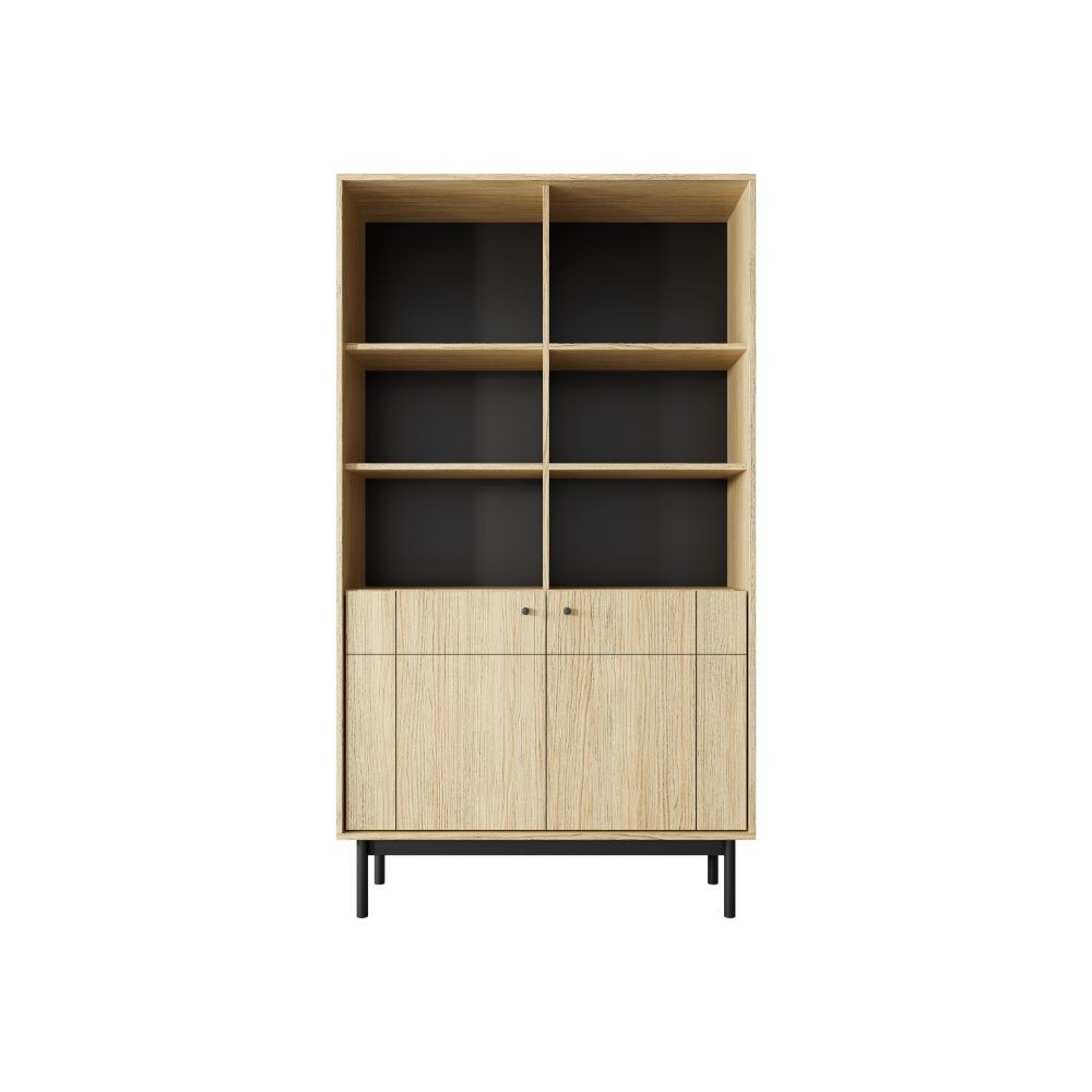 R104 Japandi ąžuolo linea knygų spinta su spintelėmis