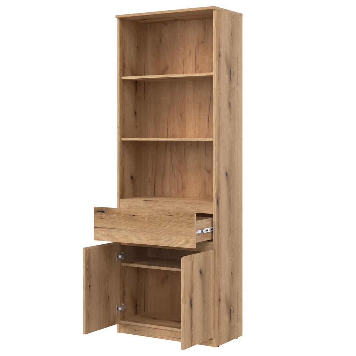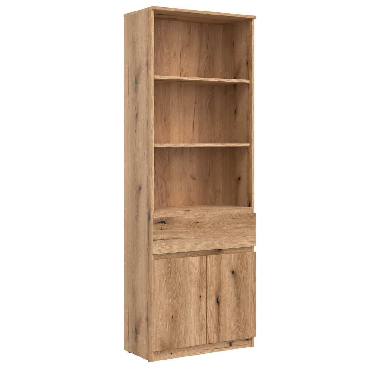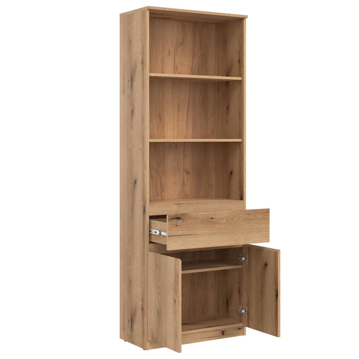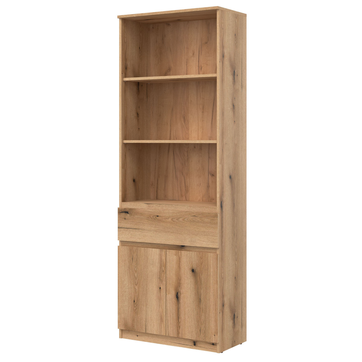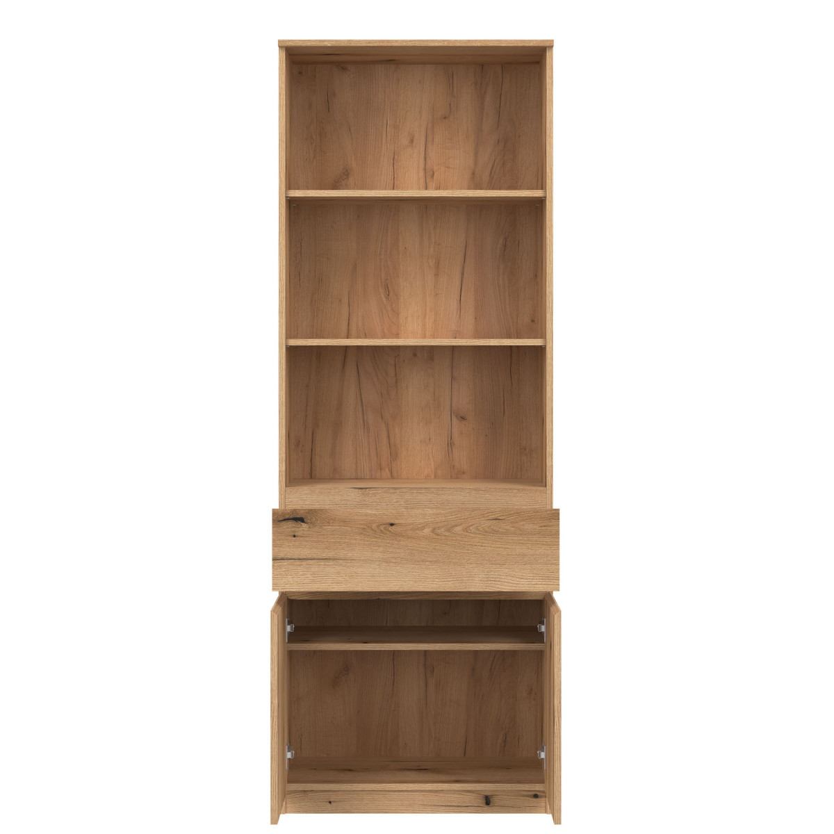 REMI RM09 spintelė – puikus sprendimas svetainei, valgomajam, darbo kambariui ar jaunimo kambariui. Ji turi vieną erdvų stalčių centre ir tris lentynas, įskaitant vieną už uždarų durelių. Paslėptos lentynos už durelių gali būti naudojamos tekstilei ar smulkiems aksesuarams laikyti, o trys atviros nišos puikiai tinka knygų kolekcijai ar dekoratyviniams daiktams eksponuoti. Išskirtinis ir patrauklus dizainas daro ją tobulu bet kurios erdvės papildymu. Moderni spalvų gama leidžia sukurti tobulą interjerą, pritaikytą prie vartotojų skonio ir poreikių. Ryškios fasadų frezos, kurios pakeičia tradicines rankenas, pabrėžia bendrą dizainą. Kolekcijai būdinga minimalistinė išvaizda ir funkcionalumas. Spintelė idealiai tinka derinti su kitais REMI serijos baldais arba kaip atskiras baldas, prisitaikantis prie jūsų kambario interjero dizaino.