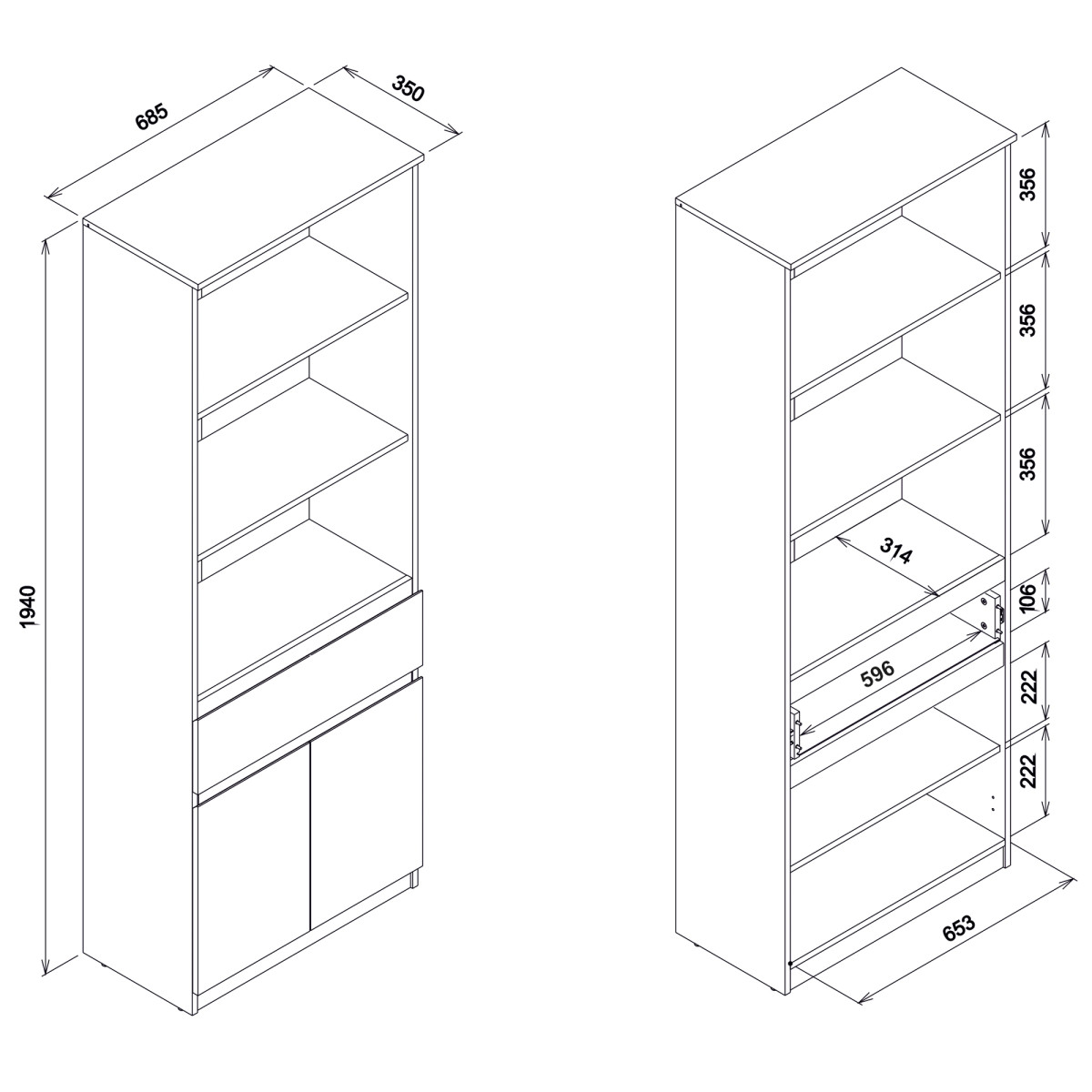 Plotis 68,5 cm Gylis 35 cm Aukštis 194 cm Produkto svoris su pakuote 40,95 kg Gamintojo kodas / simbolis RM09 Kolekcijos pavadinimas REMI Produkto pakuočių skaičius 2 Stilius Moderni įranga Surinkimo instrukcijos / surinkimo priedai Surinkimas Savarankiškam surinkimui Stalviršio medžiaga / tipas / storis laminuota medžio drožlių plokštė 16 mm Korpuso medžiaga / tipas / storis laminuota medžio drožlių plokštė 16 mm Lentynų medžiaga / tipas / storis laminuota medžio drožlių plokštė 16 mm Lentynų kiekis 3 Priekinės dalies medžiaga / tipas / storis laminuota medžio drožlių plokštė 16 mm Priekinė rankena / dizainas / spalva frezavimas Stalčių bėgeliai rutulinis guolis Kojelė / dizainas / spalva COKOLIS Stalčių skaičius 1