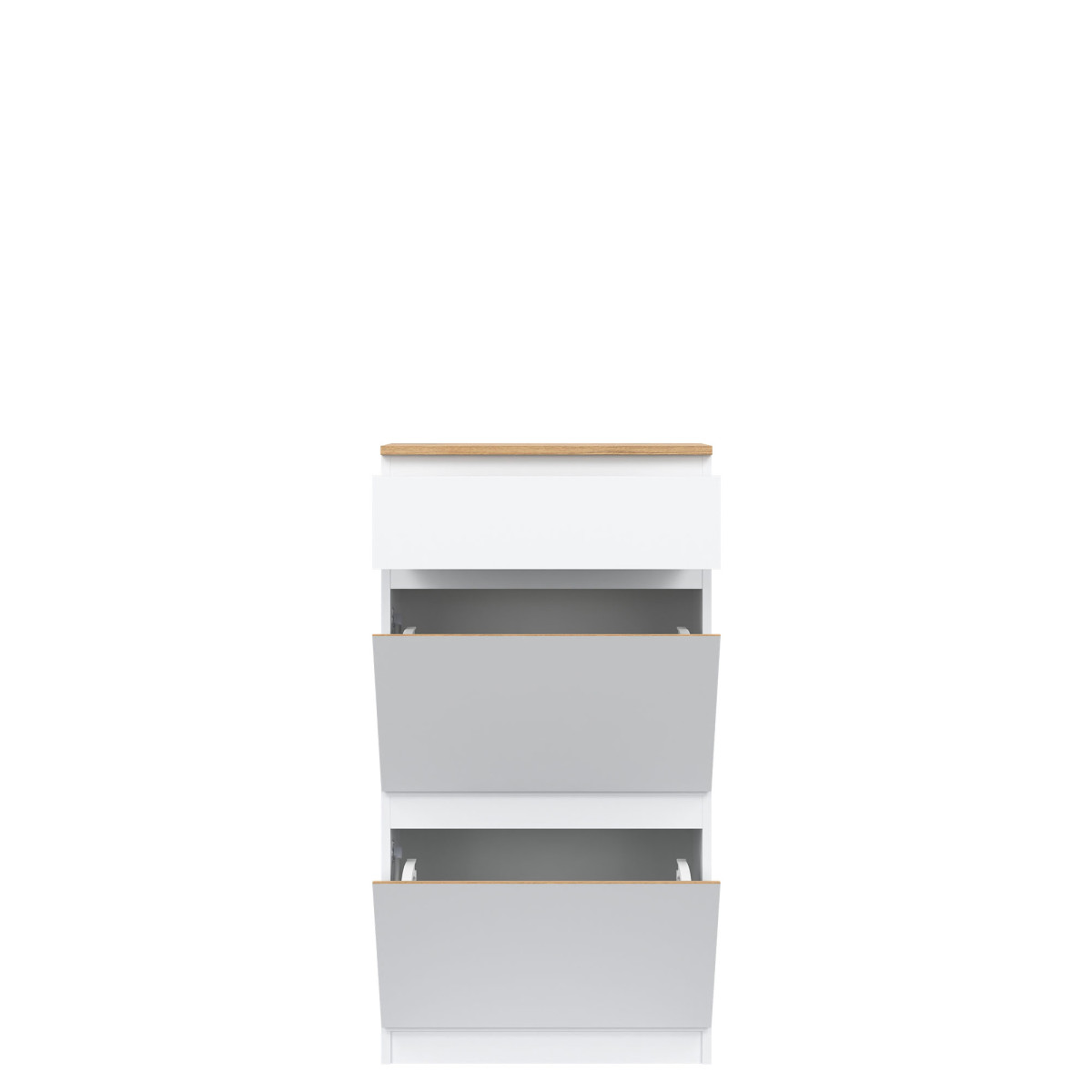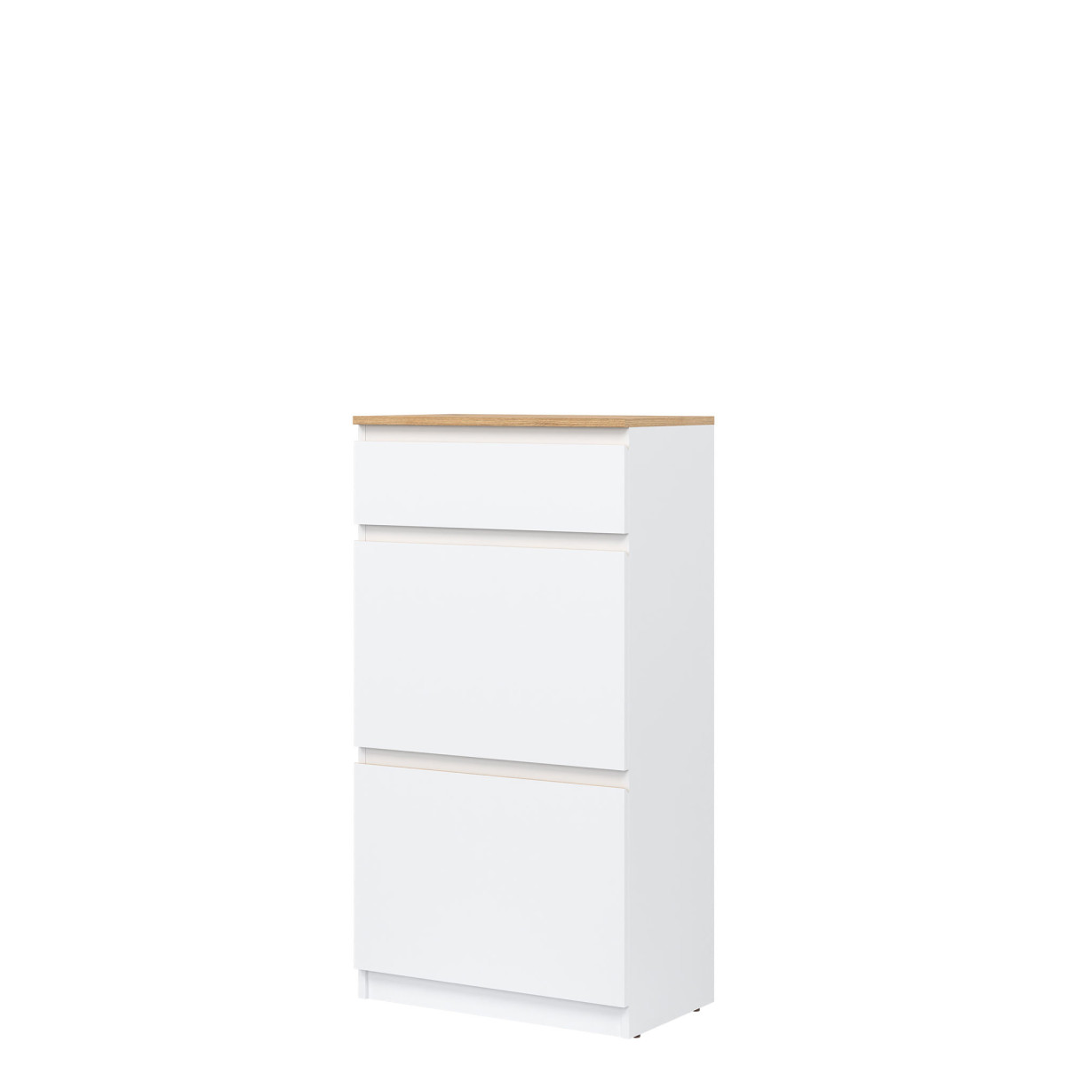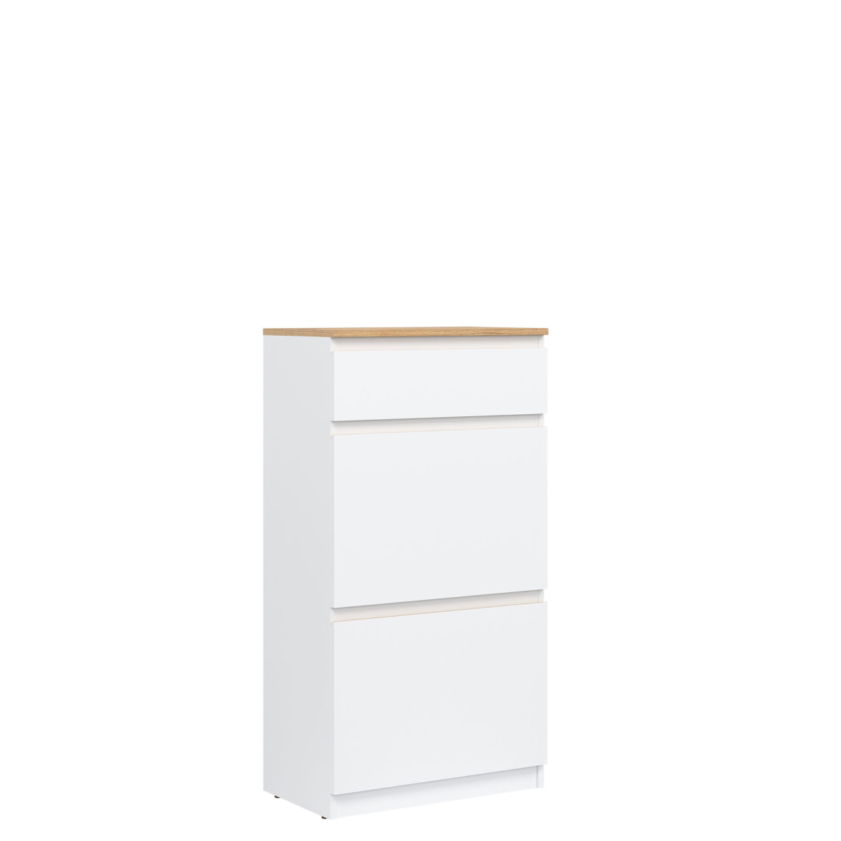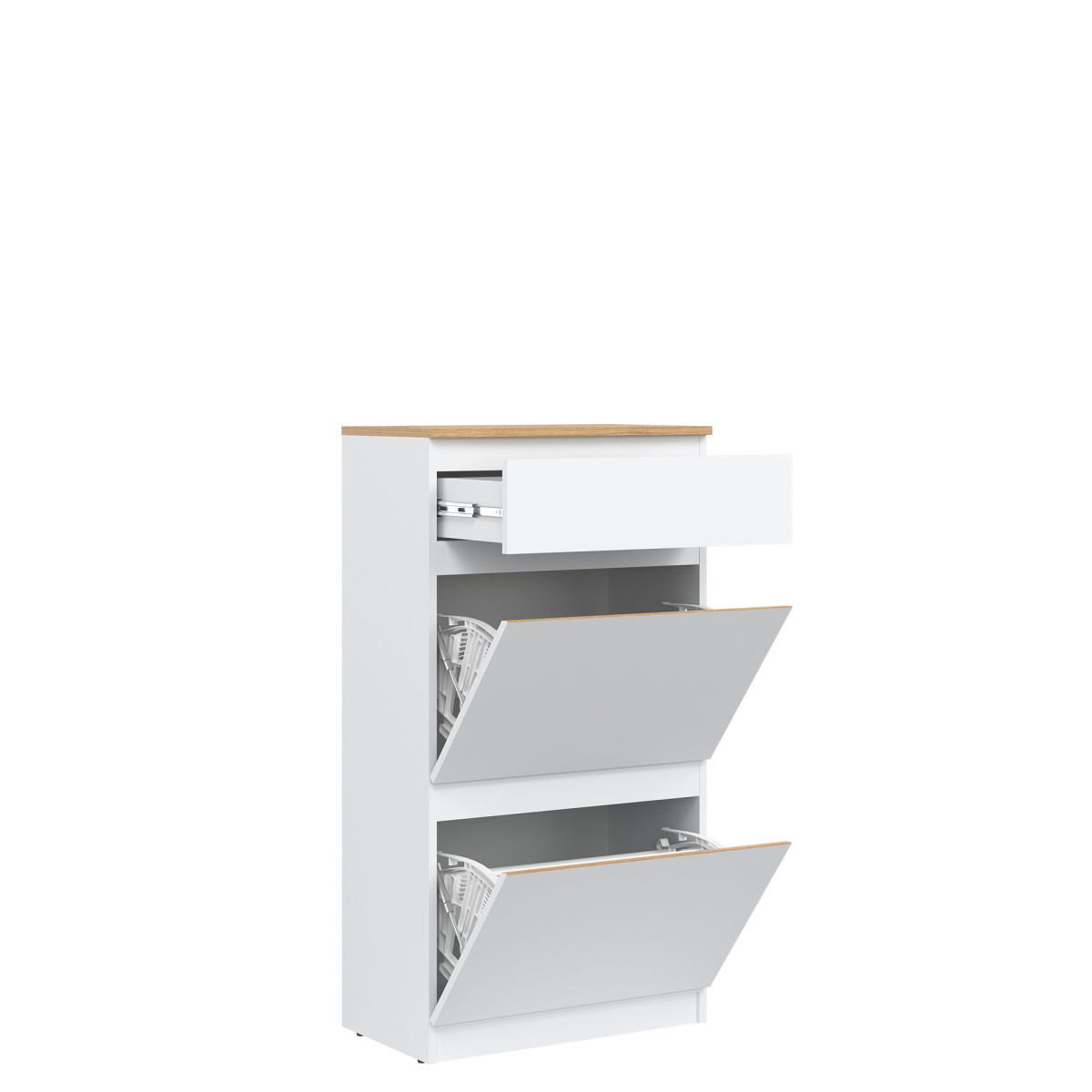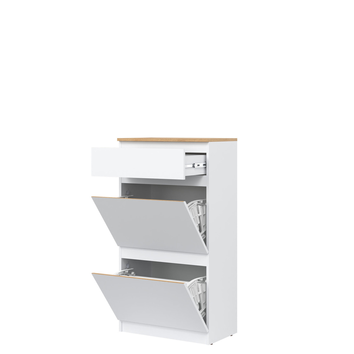 REMI RM11 batų spintelė – naudingas baldas koridoriui ir ne tik. Ji turi varstomas duris ir stalčių virš jų, todėl praktiškai galima laikyti smulkius daiktus. Tai patogus sprendimas norint palaikyti tvarką koridoriuose net ir mažose erdvėse. Moderni spalvų gama leidžia sukurti tobulą interjerą, pritaikytą prie vartotojų skonio ir poreikių. Ryškus fasadų frezavimas, pakeičiantis tradicines rankenas, pabrėžia bendrą dizainą. Kolekcijai būdinga minimalistinė išvaizda ir funkcionalumas. Batų spintelė idealiai dera su kitais REMI serijos baldais arba yra atskiras baldas, prisitaikantis prie jūsų kambario interjero dizaino.