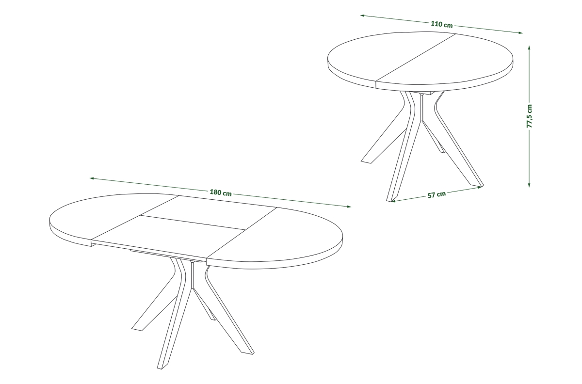 PLOTIS 110 cm / 180 cm, GYLIS 110 cm, AUKŠTIS 77,5 cm, STALVIRŠIO FORMA Apvali, MEDŽIAGOS Ąžuolo fanera (natūralus fanera) + ąžuolo mediena, FUNKCIJA Ištraukiamas stalviršis, STILIUS Modernus / Skandinaviškas / Klasikinis, SVORIS SU PAKUOTE 44 kg