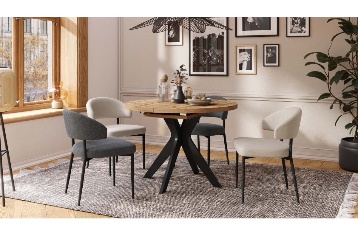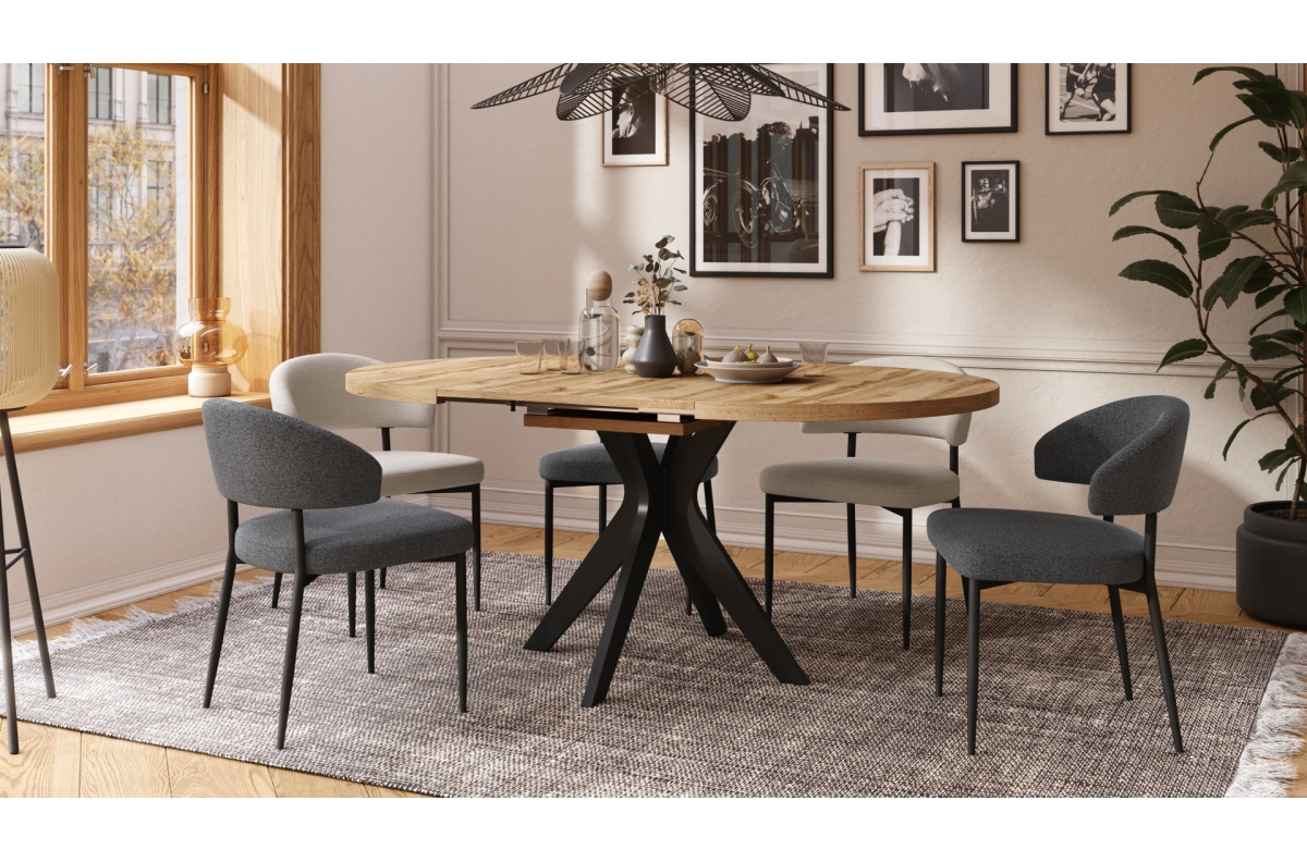 RENZO stalas – elegantiškas ir FUNKCIONALUS, pasižymintis nesenstančiu dizainu. Apvalų stalviršį galima lengvai prailginti dėl sumaniai paslėpto, “sulankstomo” prailginimo įdėklo, kuris nenaudojant pasislepia po apačia. Tai suteikia stalui universalumo – kasdien naudojant jis užima minimaliai vietos, o prireikus greitai transformuojasi į didesnį stalą, puikiai tinkantį susibūrimams su šeima ar draugais.