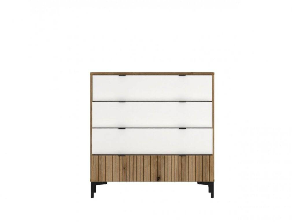 Ricko RIKK03 – 4 stalčių komoda, balta/ąžuolo spalvos, „Coast Evoke“