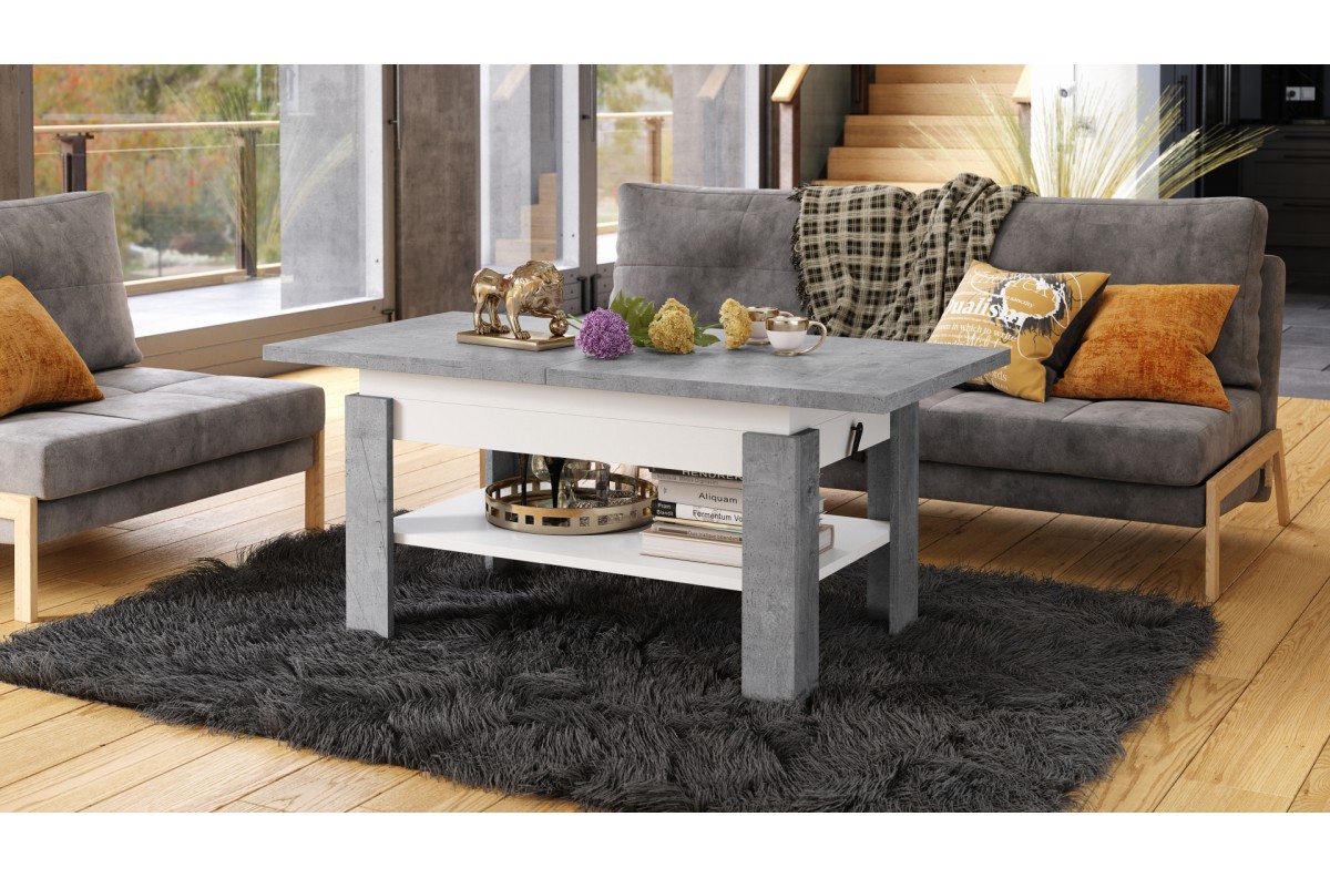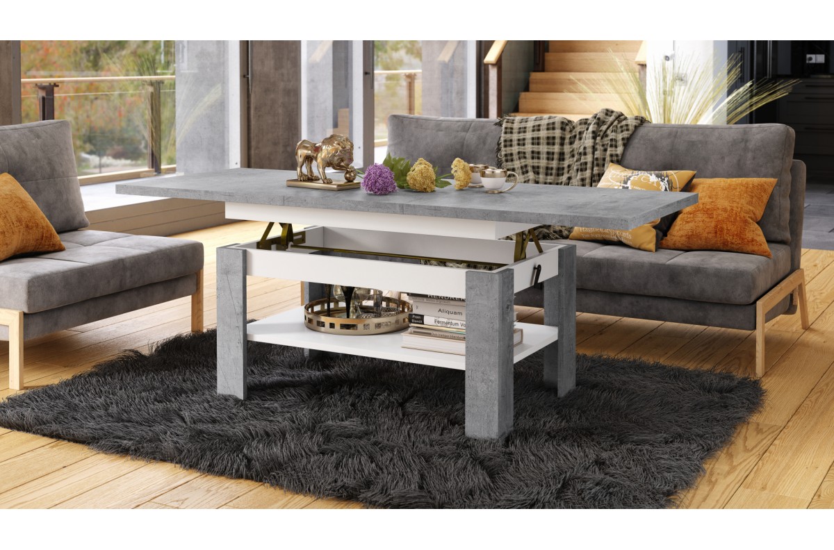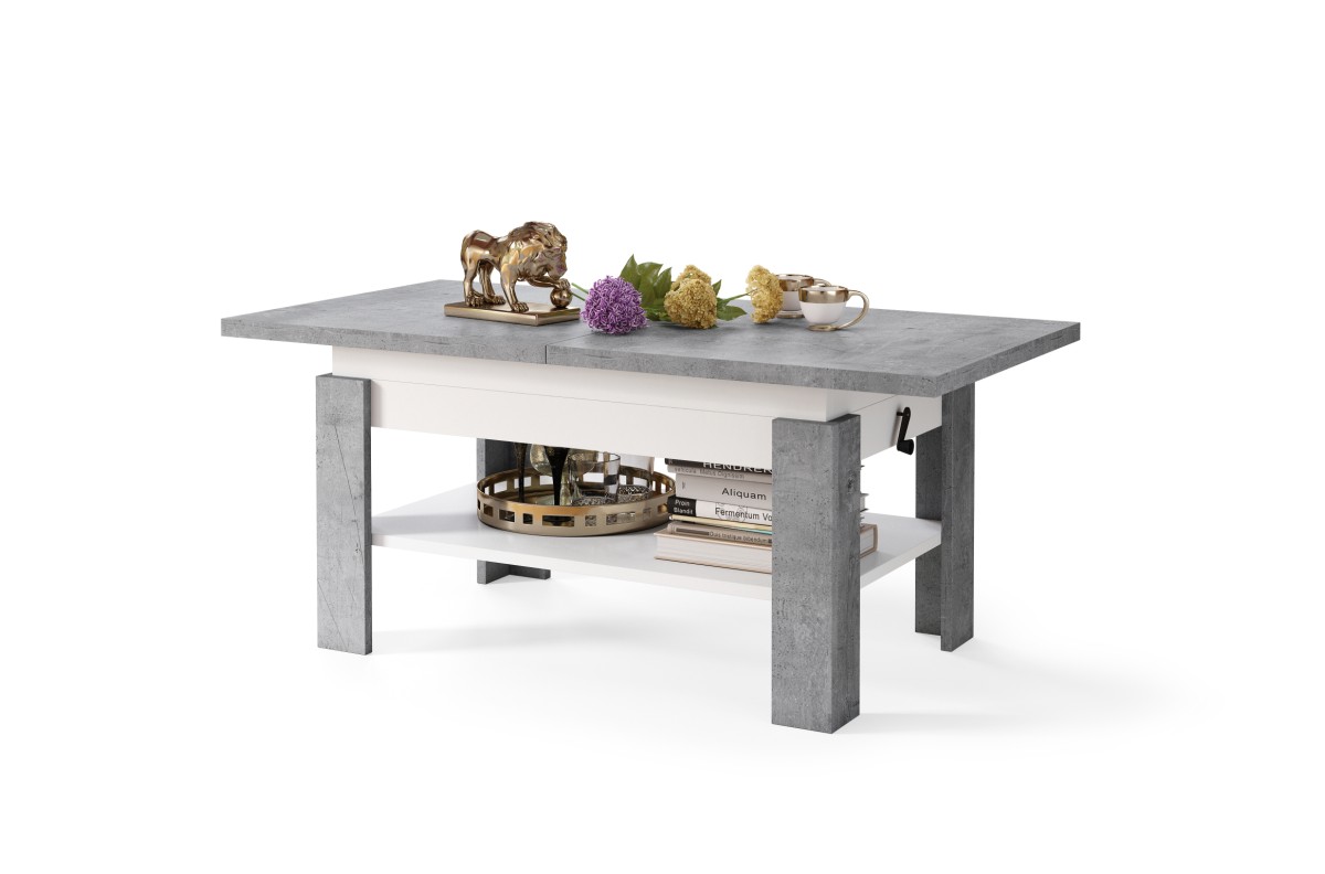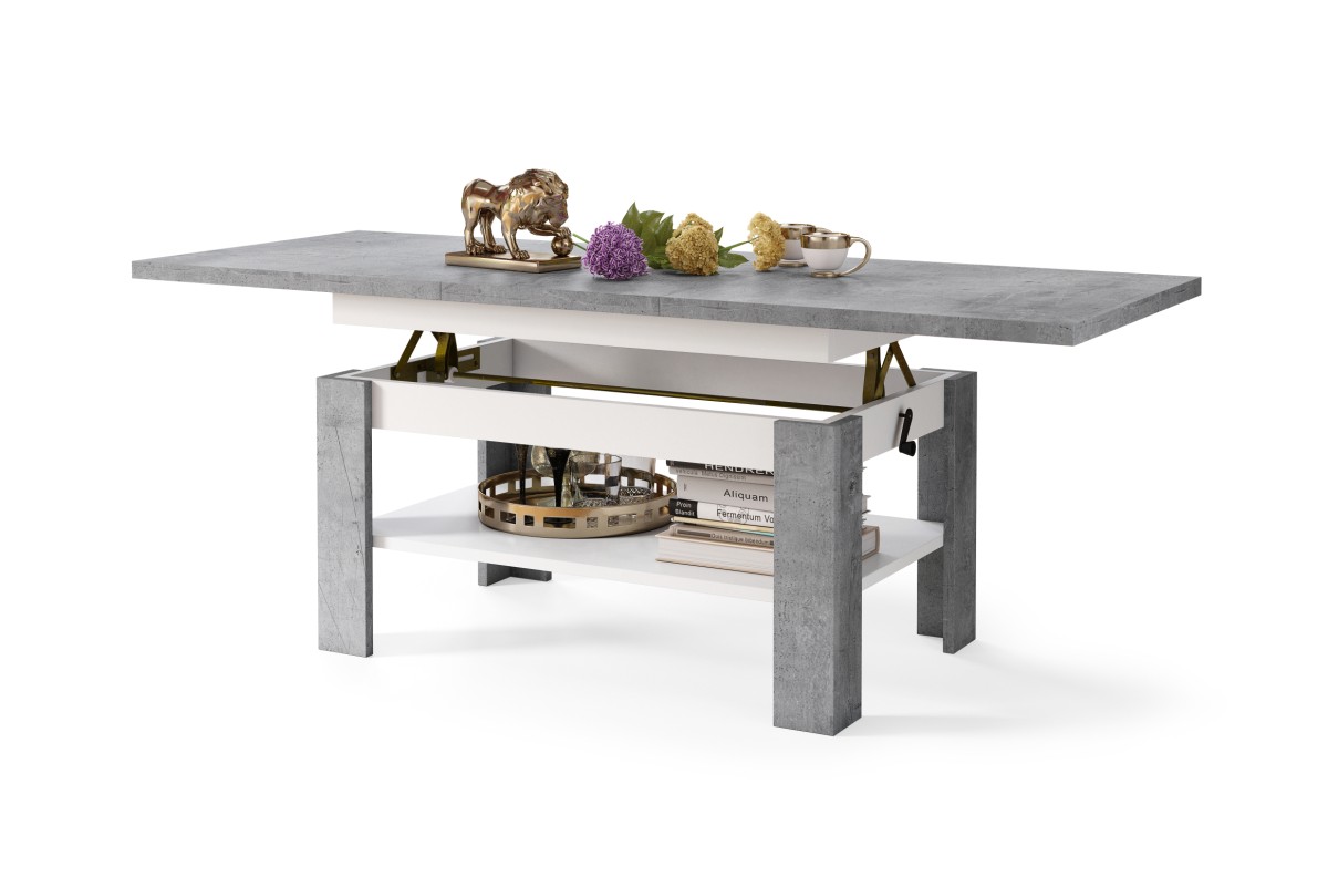 RIO Millenium betono/matinė balta – sulankstomas suolas, pakeliamas staliukas, kavos staliukas su lentyna