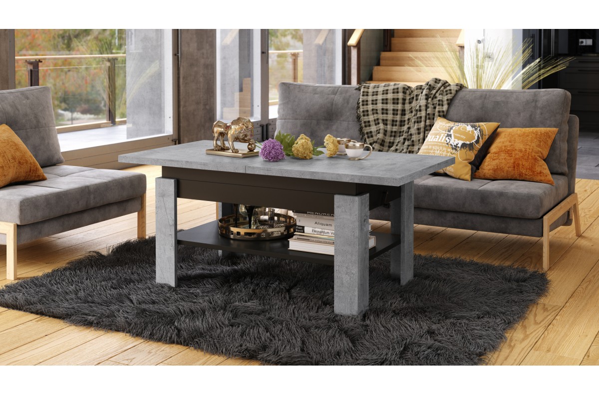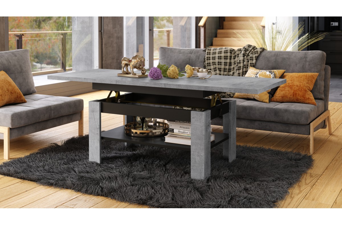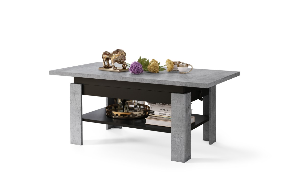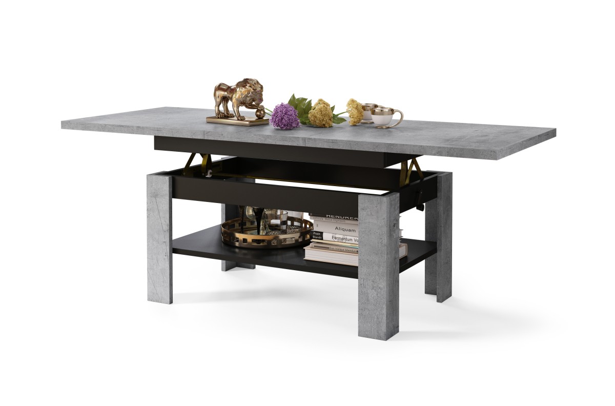 RIO Millenium betono/matinė juoda – sulankstomas suolas, pakeliamas staliukas, kavos staliukas su lentyna