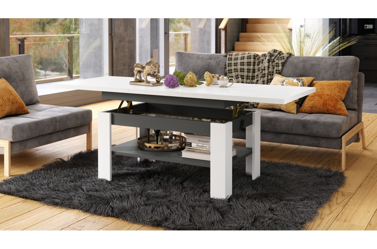 SVARBU: Kavos staliuko konstrukcija neleidžia laikyti prailginimo įdėklo po stalviršiu; jį reikia laikyti atskirai.