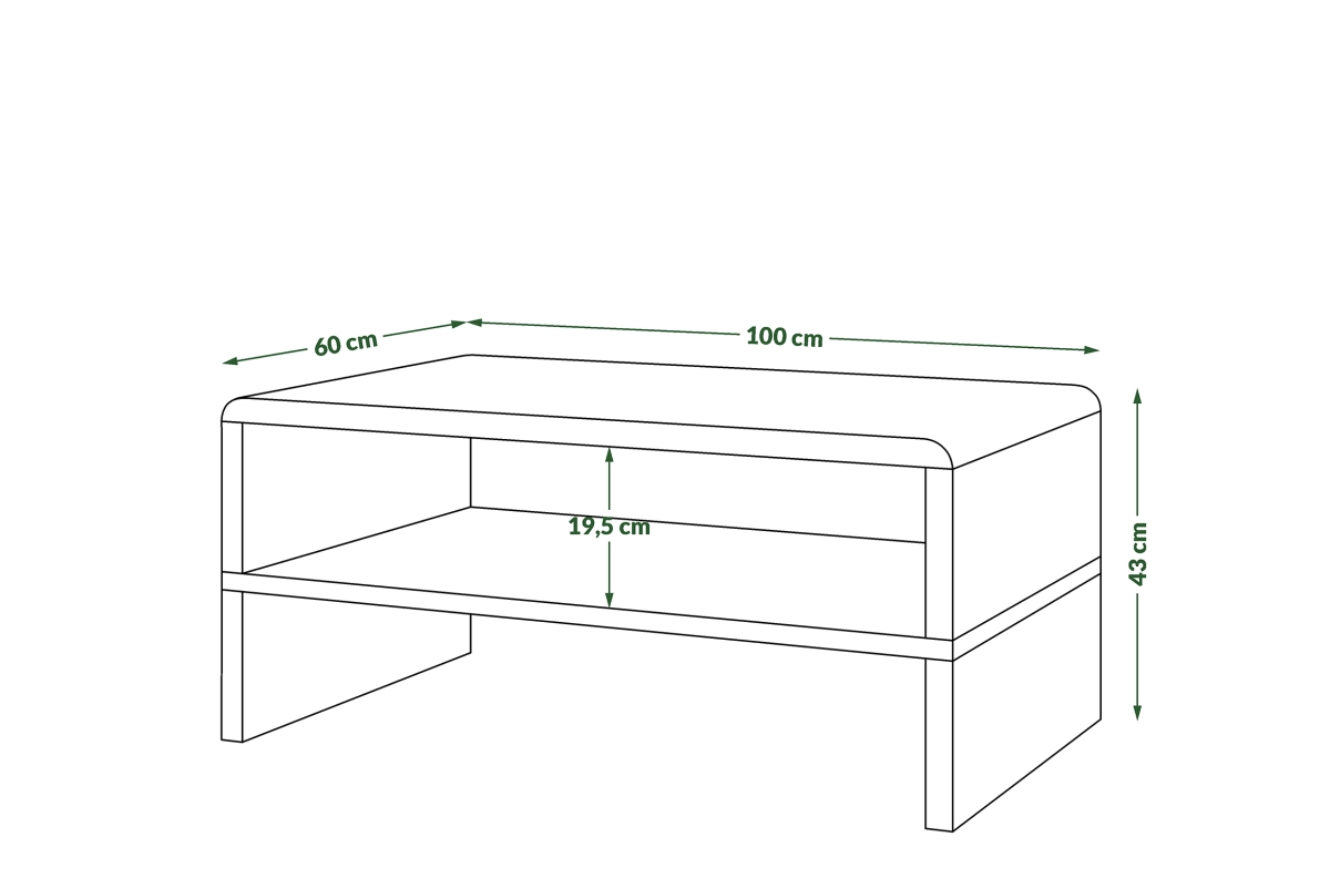 PLOTIS 100 cm, GYLIS 60 cm, AUKŠTIS 43 cm, MEDŽIAGOS MDF + medžio drožlių plokštė, PAVIRŠIUS Blizgus + matinis, STILIUS Modernus, SVORIS SU PAKUOTE 31,5 kg, KITA Gaminys skirtas savarankiškam surinkimui su pateiktomis instrukcijomis