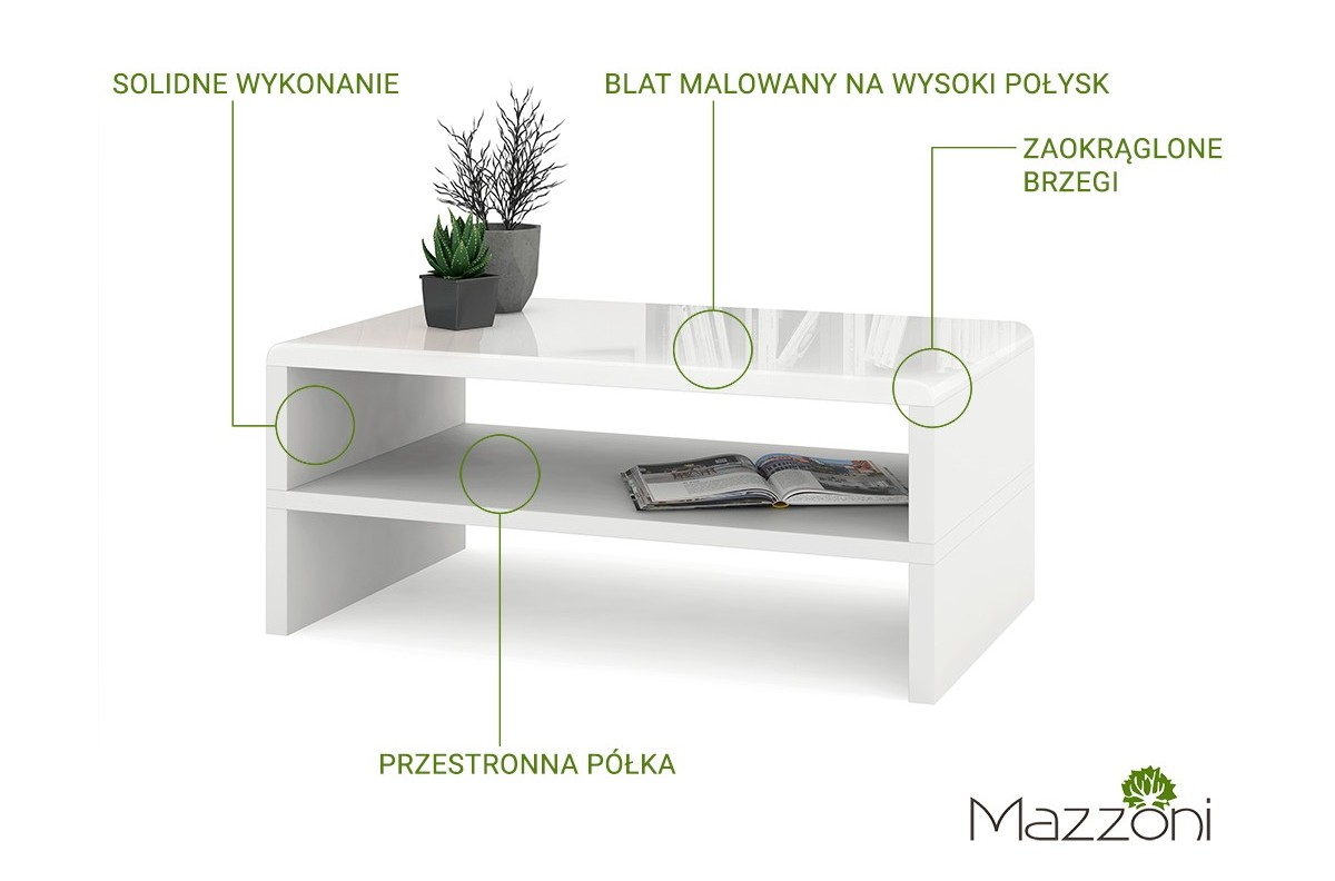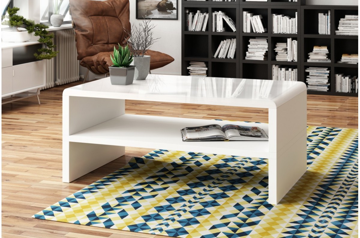 ROCK blizgi balta/balta – MODERNUS kavos staliukas su lentyna