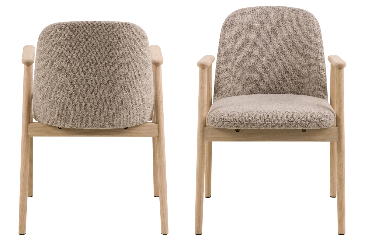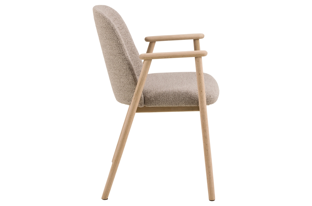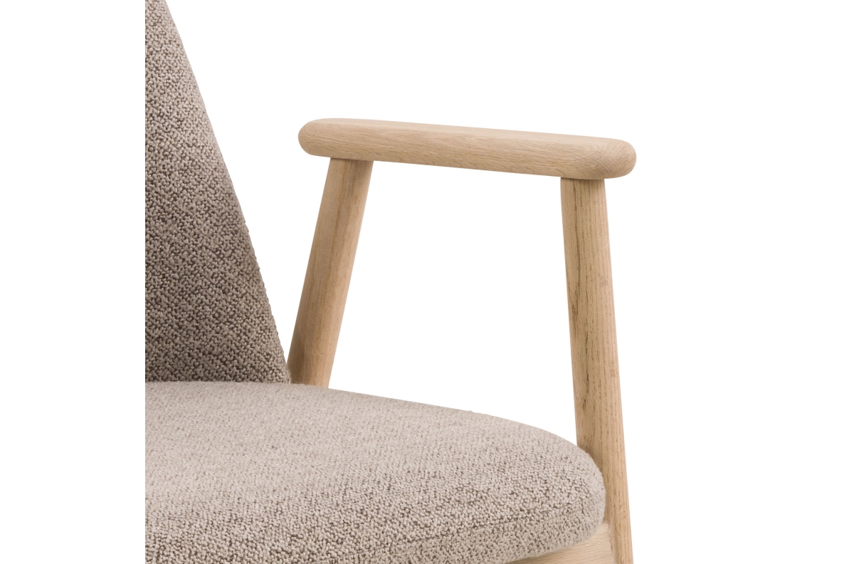 RODERIC kėdė – tai unikalus natūralios estetikos ir komforto derinys. Ji pasižymi patvariu ąžuolo rėmu su gražia apdaila, kuri išryškina natūralią medienos tekstūrą. Apmušalai pagaminti iš aukštos kokybės buklė audinio su prabangia, garbanota tekstūra. Plonos, stabilios kojelės ir elegantiški porankiai suteikia dizainui lengvumo ir subtilumo.