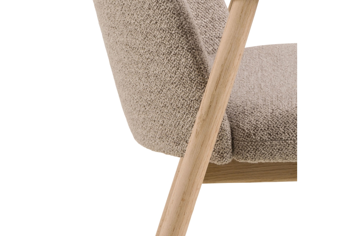 RODERIC Latte Beige (audinys „Monza 60“) / alyvuotas balinto ąžuolo rėmas – MEDINĖ BUKLĖ KĖDĖ SVETAINEI VALGOMAJAM RETRO VIRTUVEI