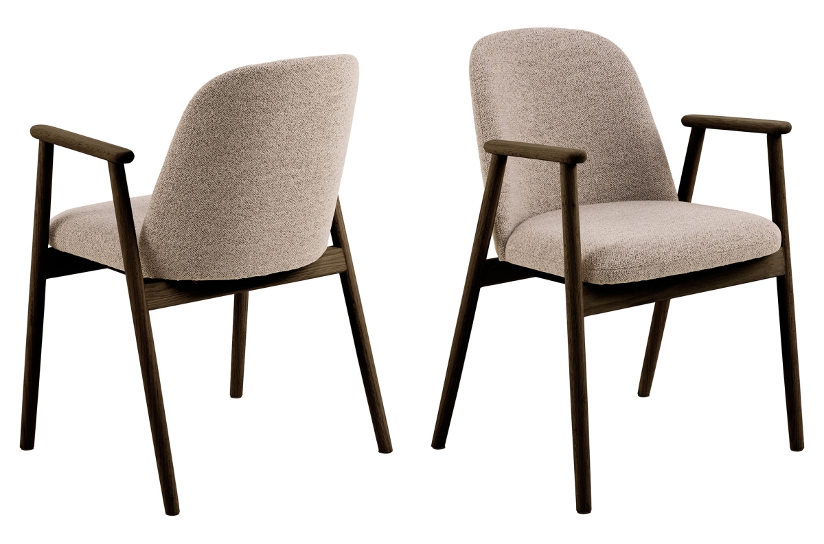 RODERIC Latte Beige (audinys „Monza 60“) / dūminio lakuoto ąžuolo rėmas (riešutmedžio atspalvis) – RETRO MEDINĖ BUKLĖ KĖDĖ
