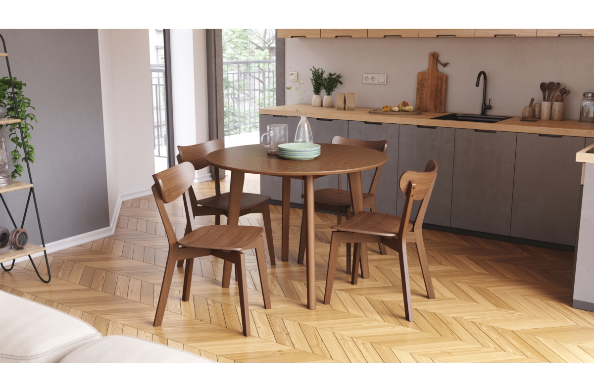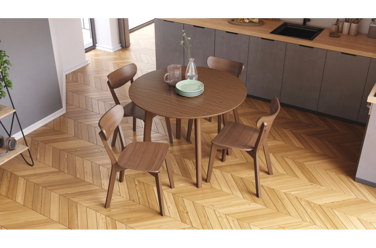 ROXY natūralus riešutmedis – apvalus medinis stalas virtuvei/valgomajam, retro stilius