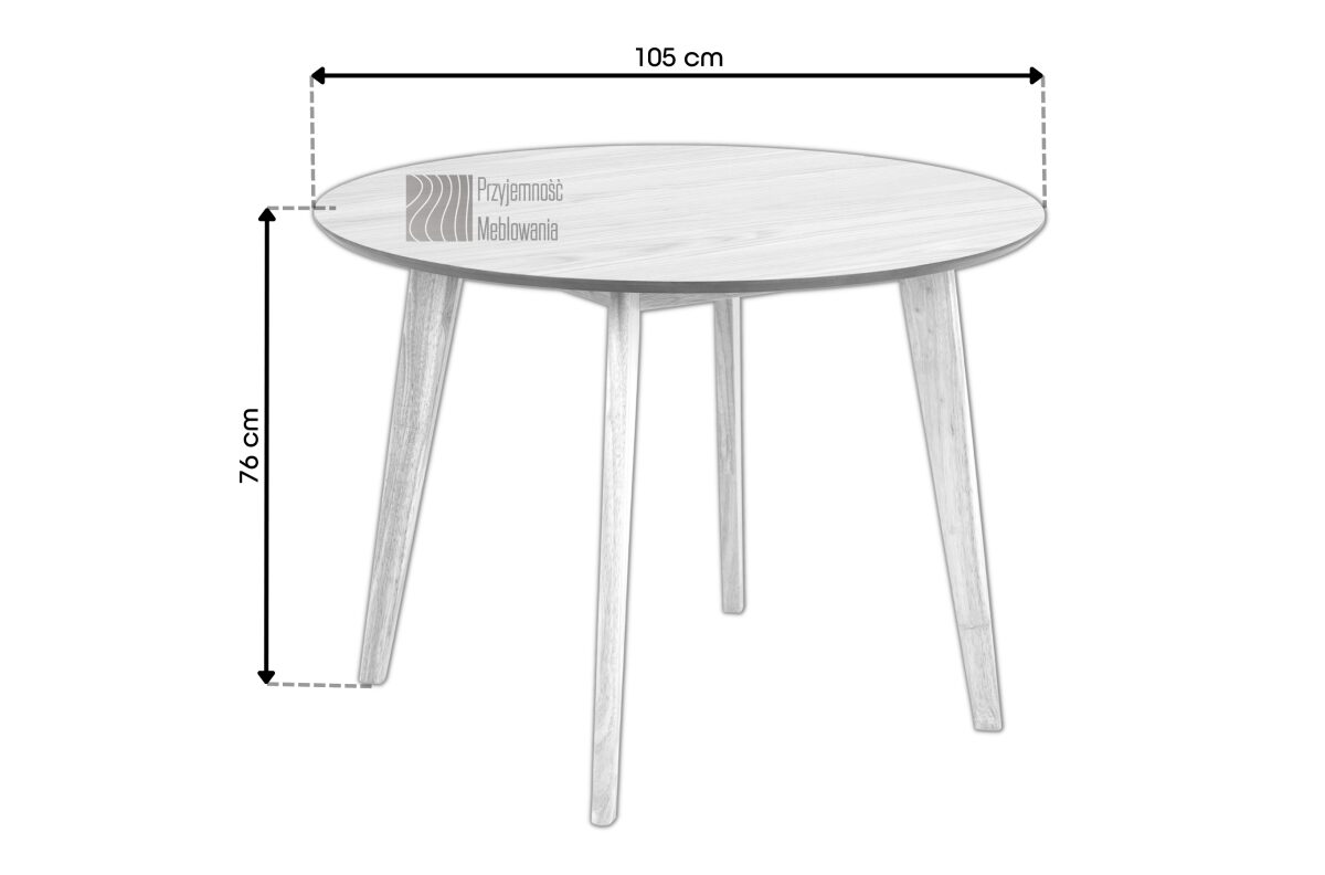 PLOTIS 105 cm, GYLIS 105 cm, AUKŠTIS 76 cm VIRŠUTINĖ FORMA Apvali, MEDŽIAGOS Ąžuolo fanera + kaučiukmedis, STILIUS Modernus / Skandinaviškas / Klasikinis, SVORIS SU PAKUOTE 19,3 kg