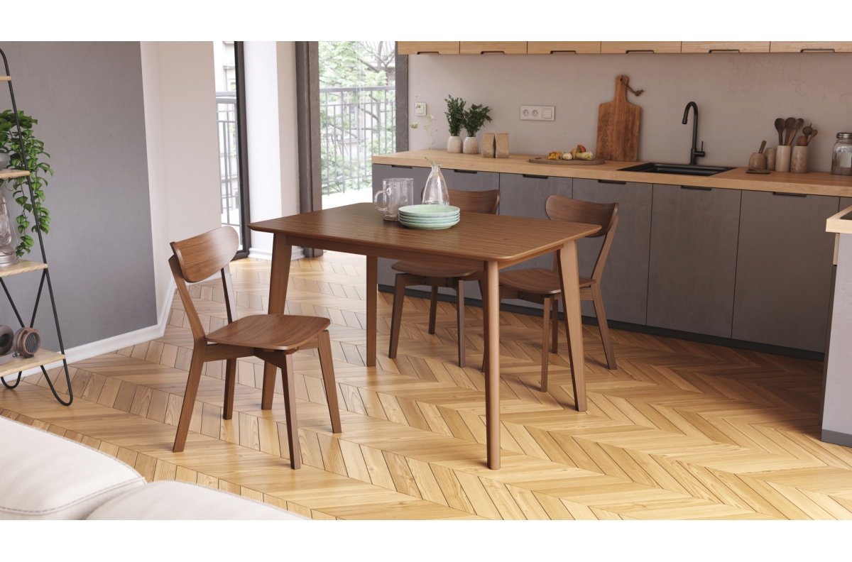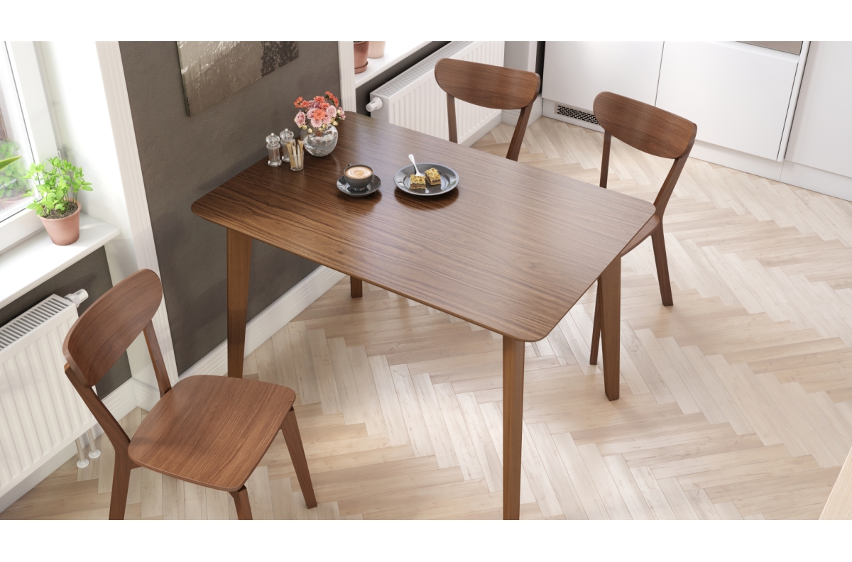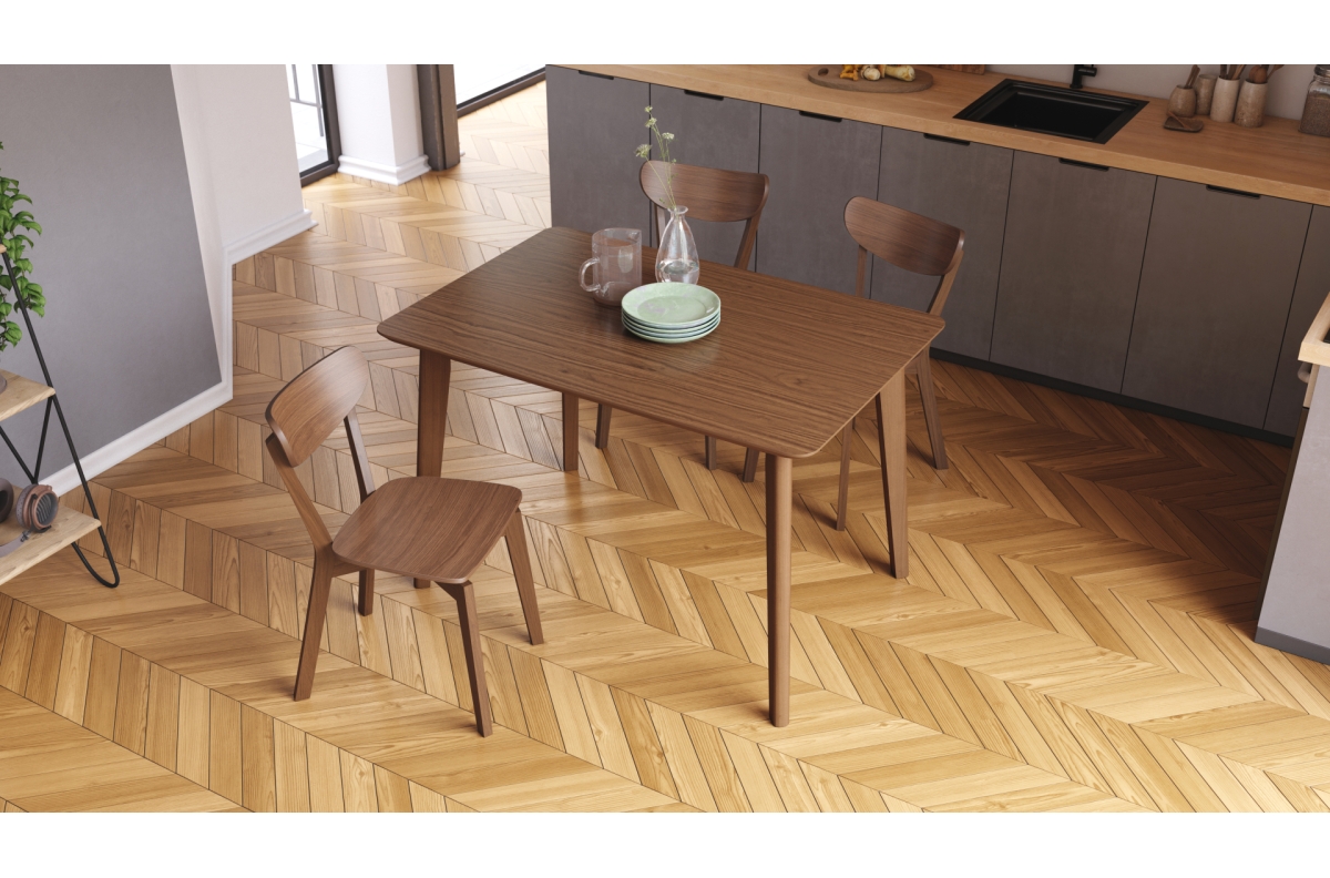 ROXY natūralus riešutmedis – stačiakampis medinis stalas 120×80 cm virtuvei/valgomajam, retro stiliumi