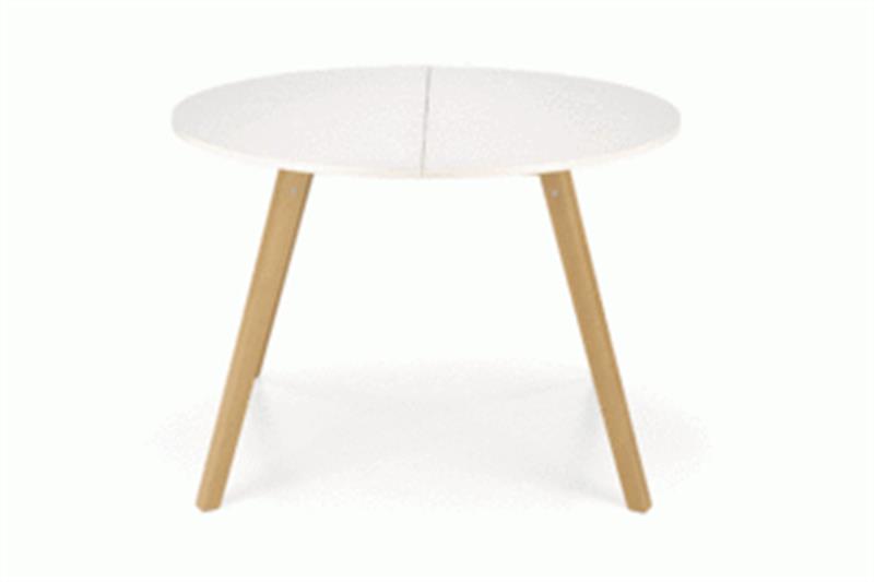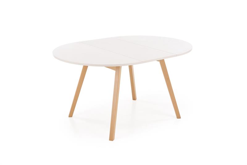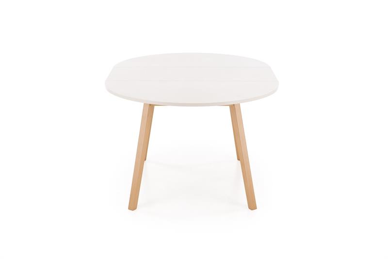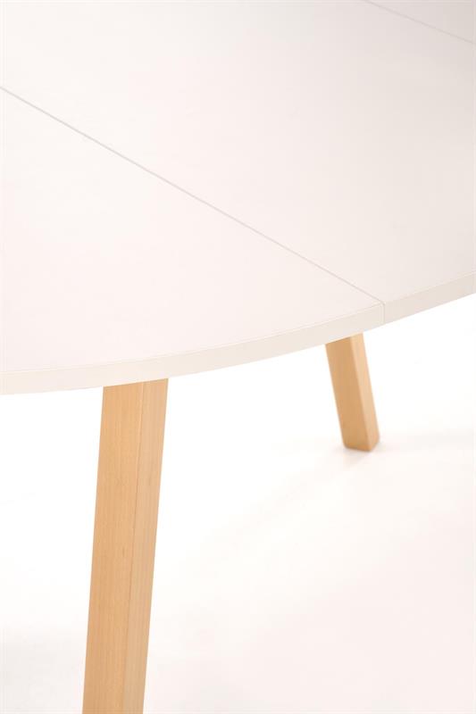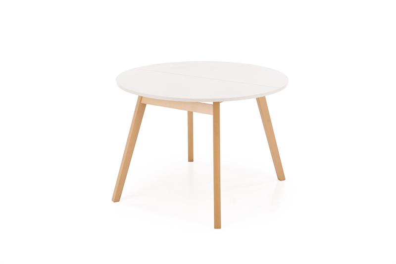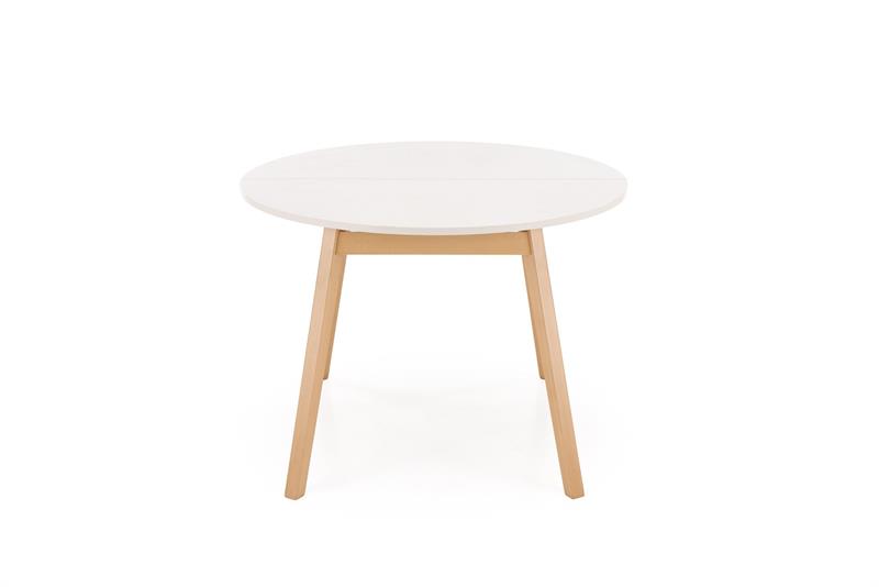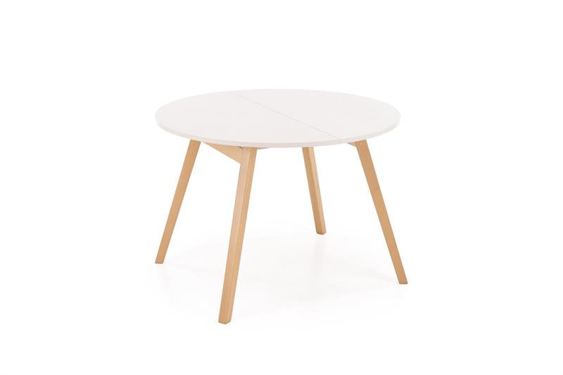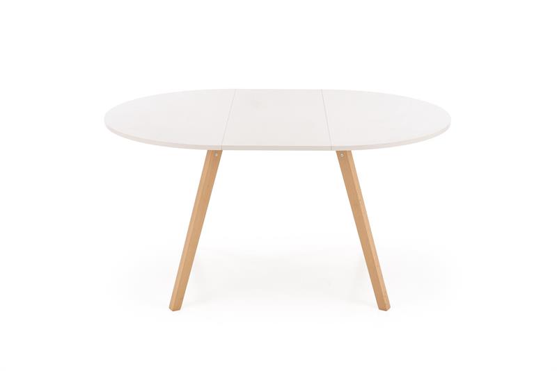 Matmenys: 102-142/102/73 cm, prailginamas stalas, medžiaga: laminuota medžio drožlių plokštė / buko masyvas, spalva: stalviršis – kašmyras, kojelės – natūralios