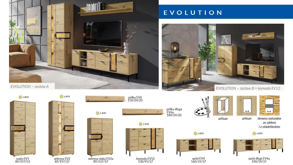 „Evolution“ sistemos baldai yra unikalūs svetainės baldai. Jų savybės: