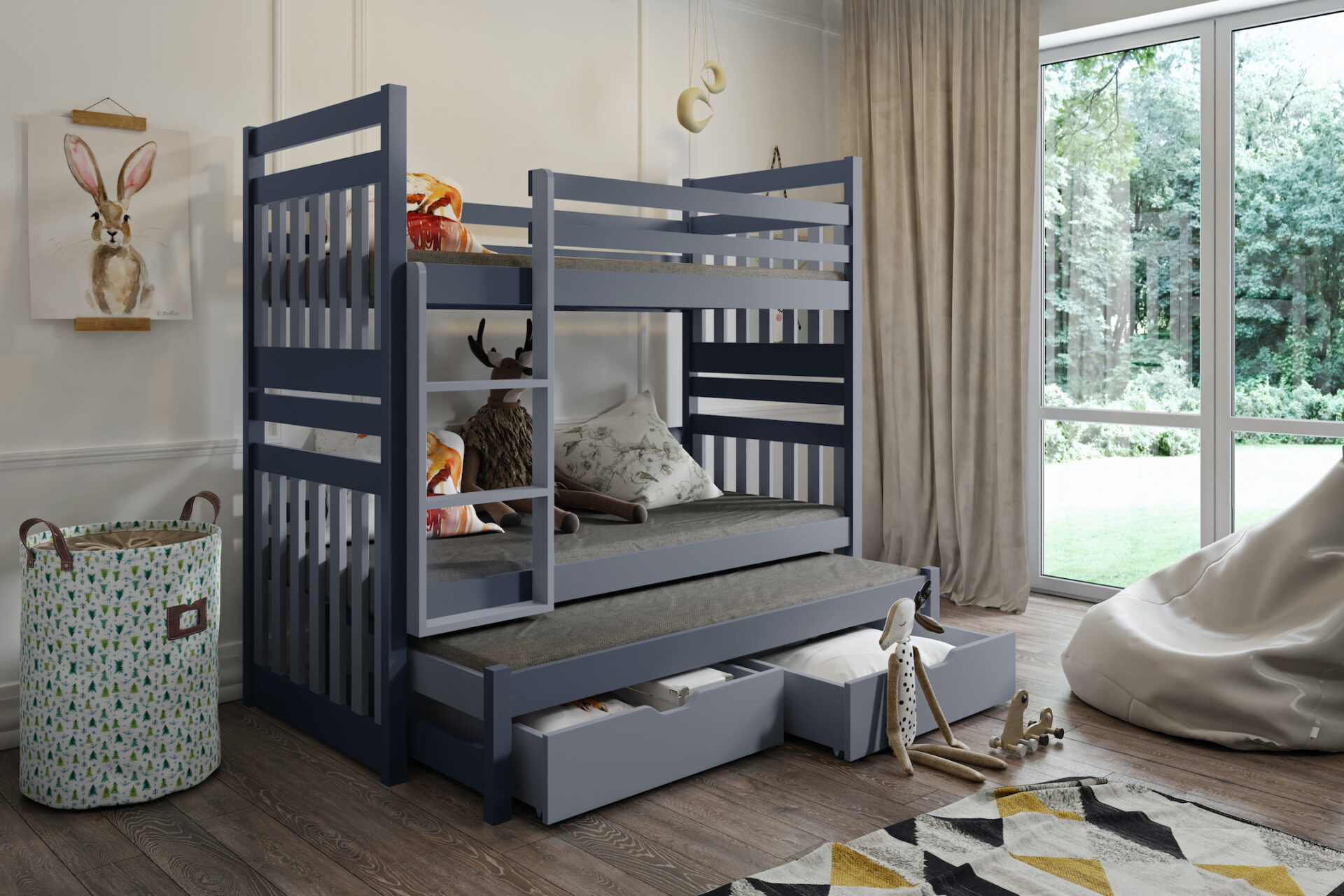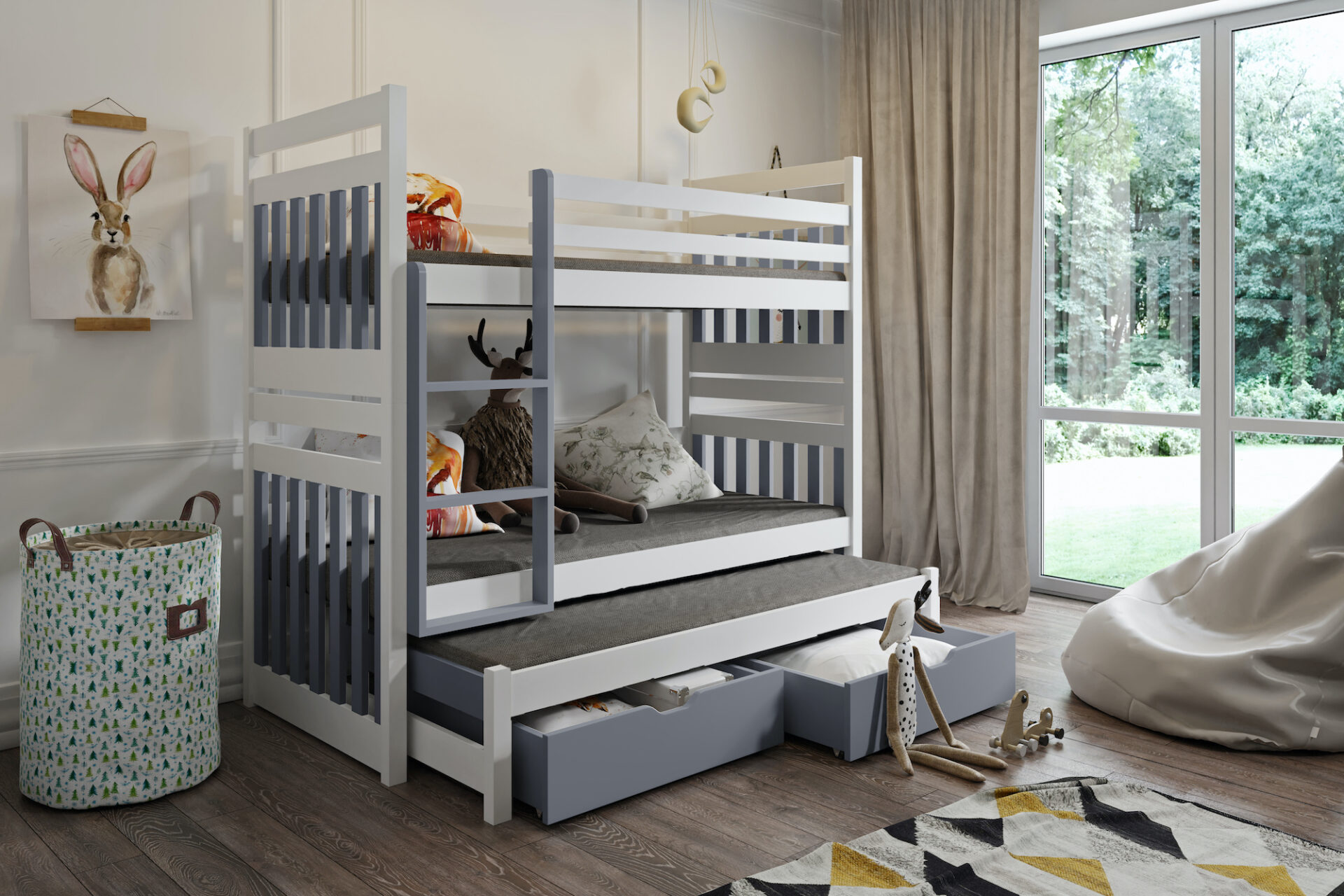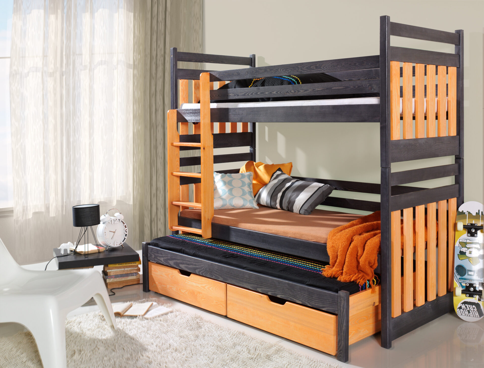 SAMBOR III trivietė dviaukštė lova su stalčiais 90×200 cm