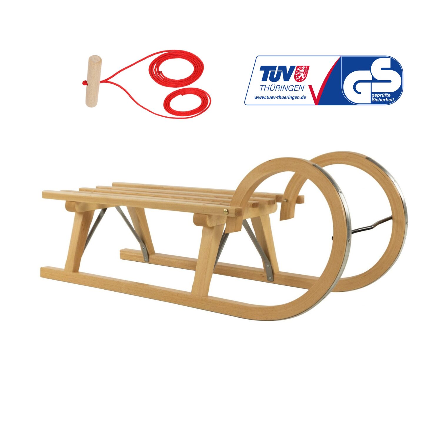 Šį rinkinį sudaro 95 cm ilgio medinės rogės AD323/2M ir rogučių laikiklis AD299 DUO HOLL su dvigubu virvele.