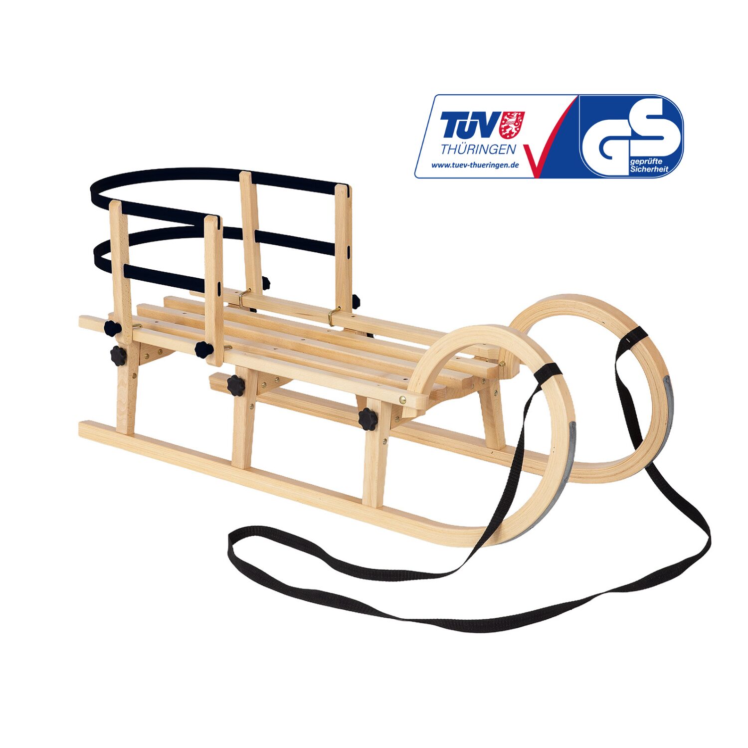Šį komplektą sudaro 110 cm ilgio medinės rogutės AD423/3M ir juodas atlošas AD303.