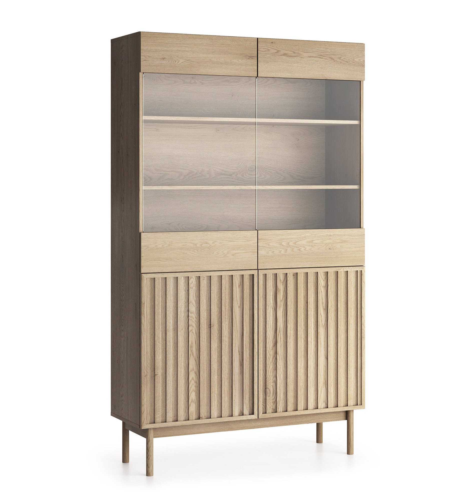 „Saori W2D“ yra ne tik graži, bet ir praktiška. Dėl stiklinių fasadų galite eksponuoti brangiausius kelionių suvenyrus, knygų kolekcijas ar šeimos nuotraukas. Dvi erdvios spintelės tilps visi jūsų dokumentai ir kiti būtini daiktai, sukurdamos puikią vietą laikyti daiktus, kurie turi būti po ranka, bet nematomi.