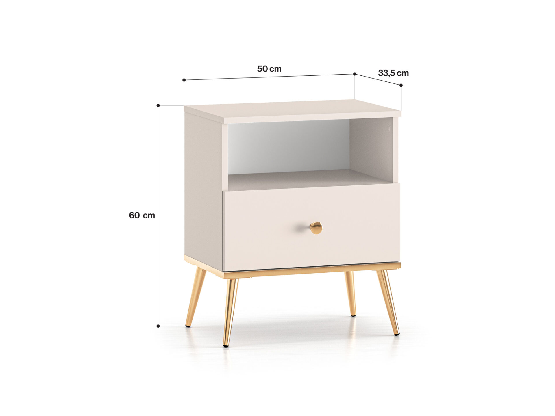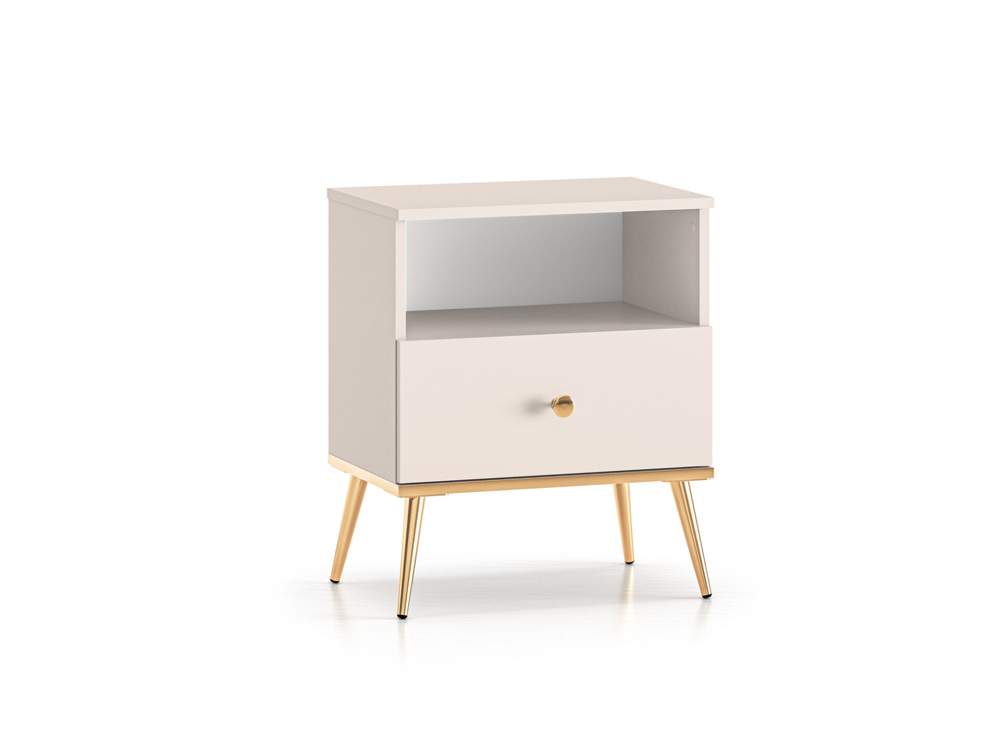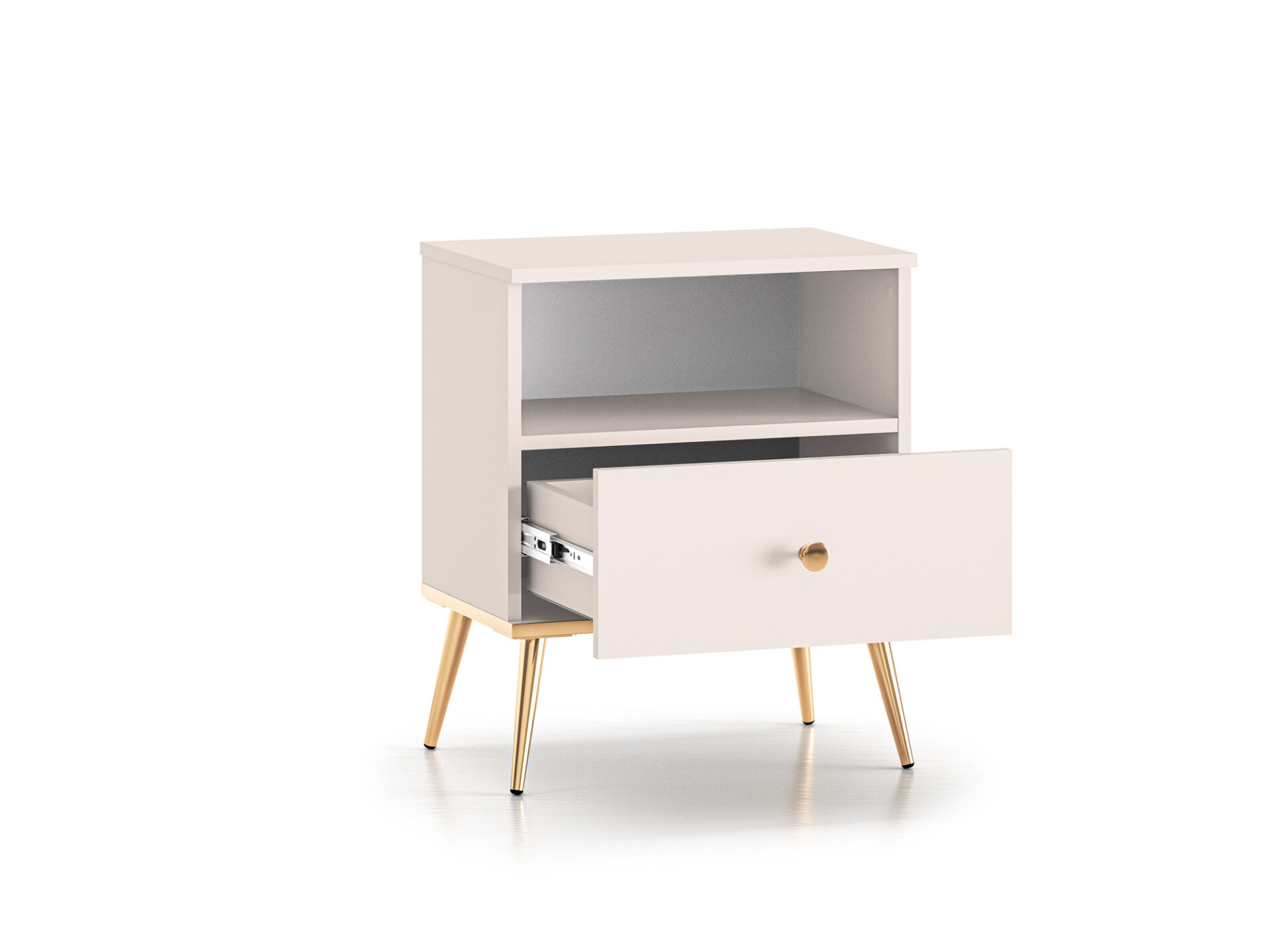 „Selgin 06“ naktinis staliukas yra būtinas jūsų lovos baldas. Dėl tinkamo aukščio stalviršio visada turėsite viską, ko jums reikia, po ranka. Atvira niša puikiai tinka laikraščiams ar knygoms laikyti. Apatinėje spintelės dalyje yra erdvus stalčius. Spintelė stovi ant stabilių, aukštų kojelių, pagamintų iš patvaraus metalo. Dvigubai cinkuotos rankenos ir aukso spalvos kojelės garantuoja patogų naudojimą daugelį metų. „Selgin“ kolekcijos baldai derina aukštą funkcionalumą ir stulbinantį dizainą.