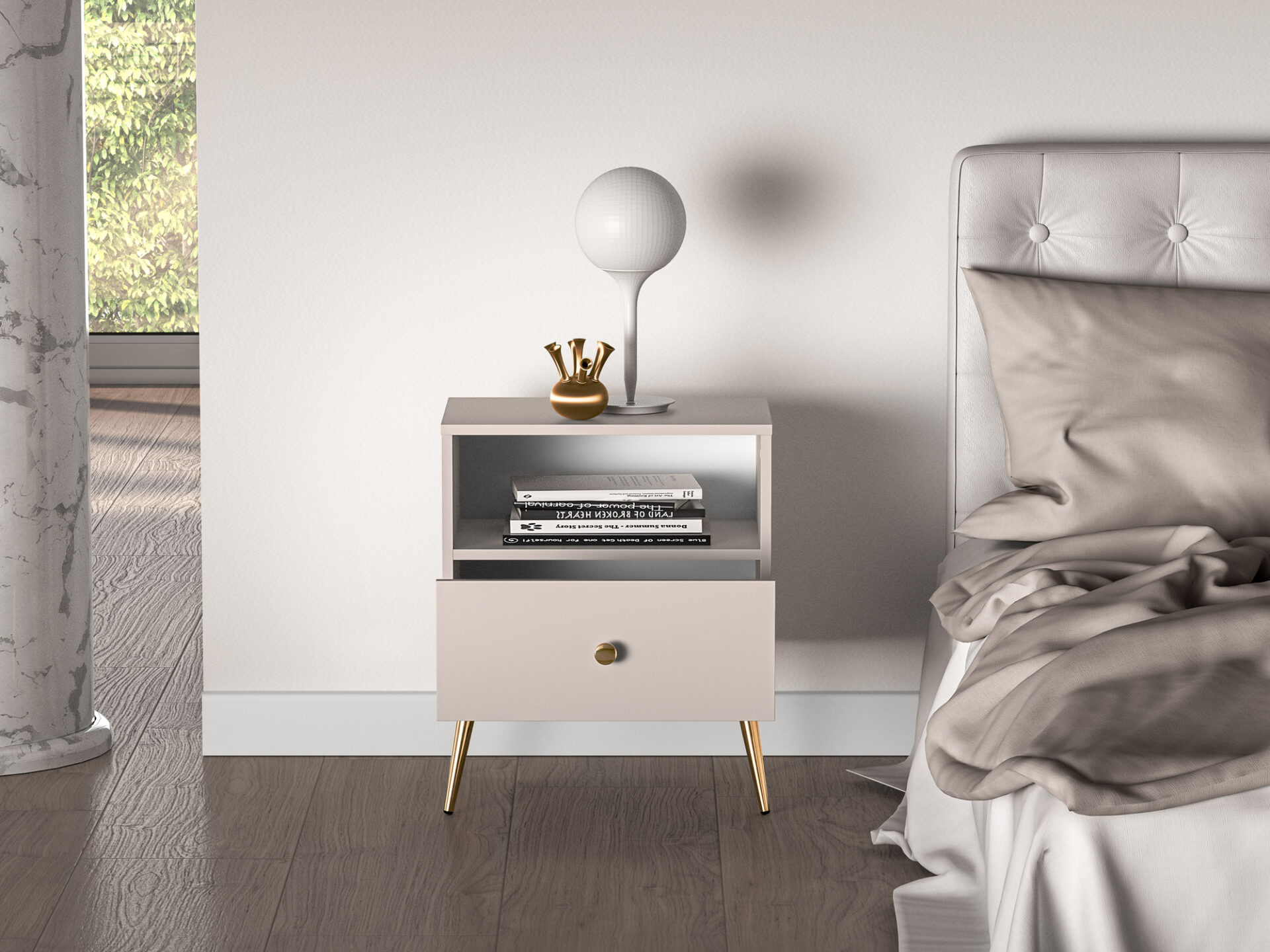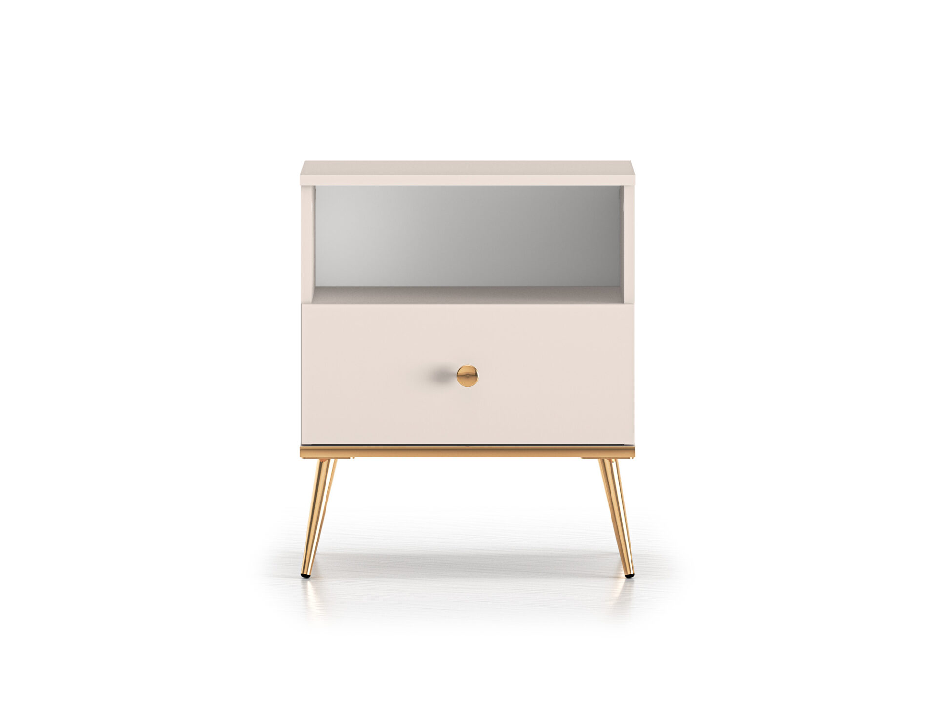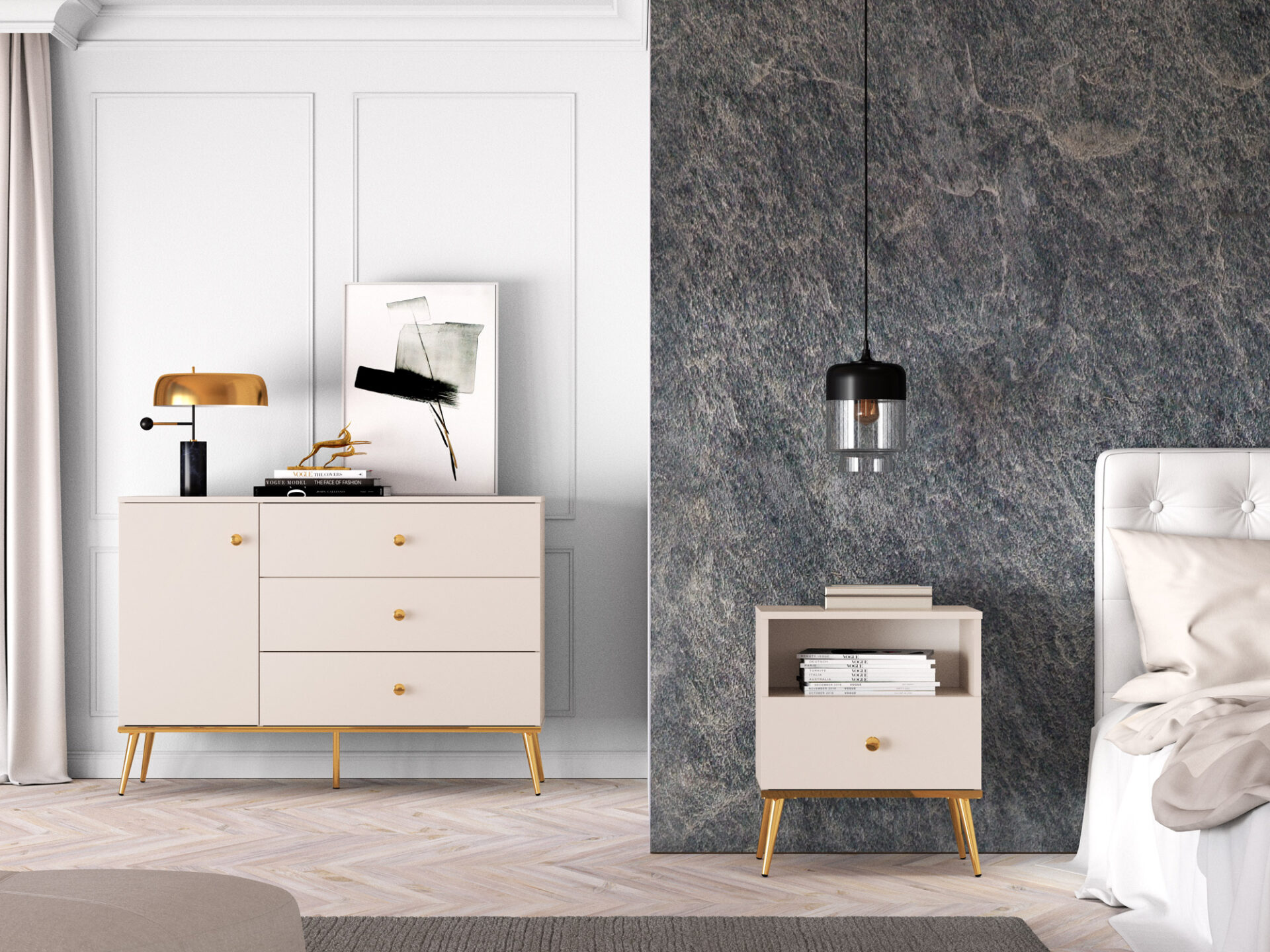 „Selgin 06“ naktinis staliukas yra būtinas jūsų lovos baldas. Dėl tinkamo aukščio stalviršio visada turėsite viską, ko jums reikia, po ranka. Atvira niša puikiai tinka laikraščiams ar knygoms laikyti. Apatinėje spintelės dalyje yra erdvus stalčius. Spintelė stovi ant stabilių, aukštų kojelių, pagamintų iš patvaraus metalo. Dvigubai cinkuotos rankenos ir aukso spalvos kojelės garantuoja patogų naudojimą daugelį metų. „Selgin“ kolekcijos baldai derina aukštą funkcionalumą ir stulbinantį dizainą.