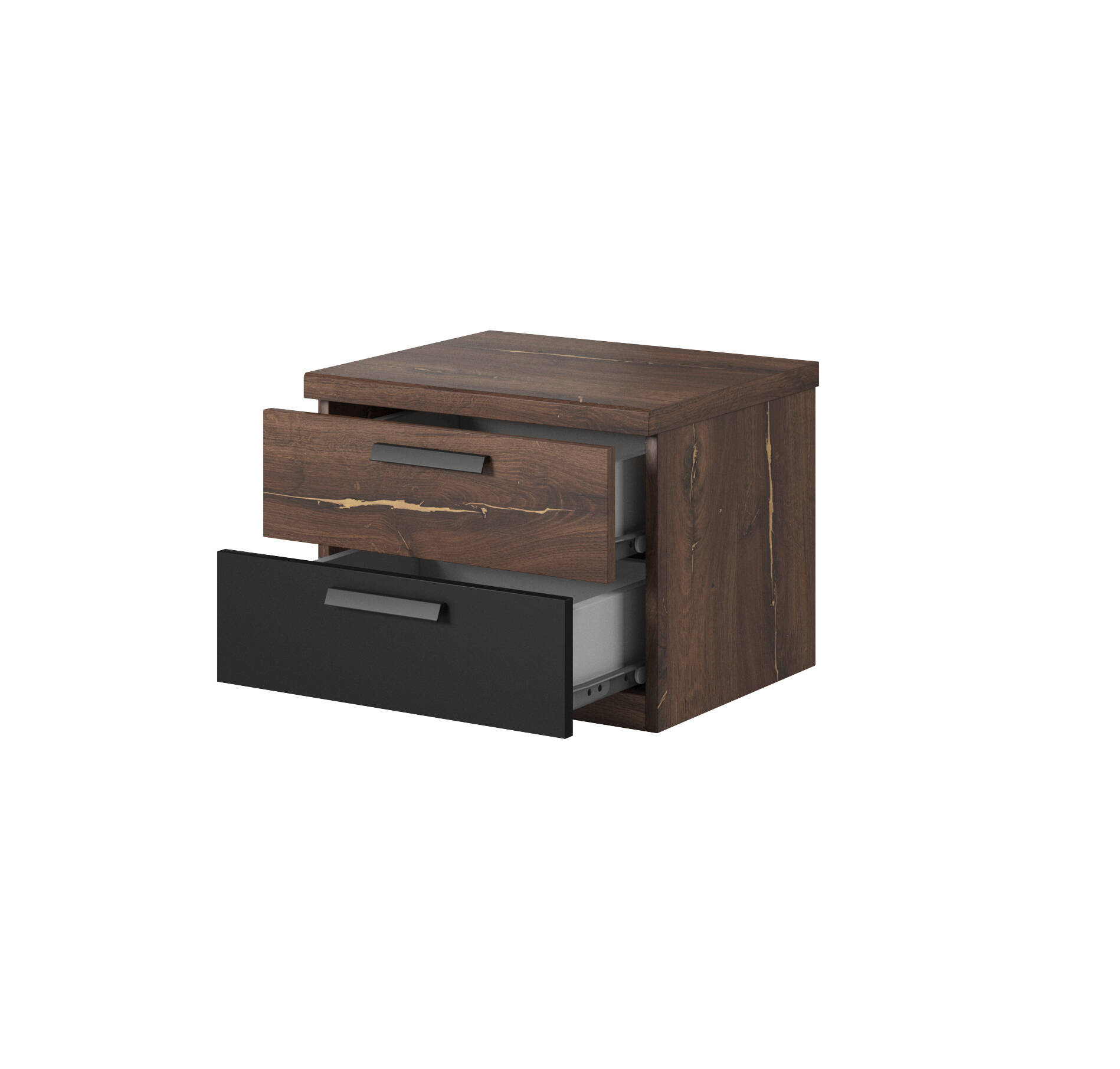 „Sigma“ naktinis staliukas su 2 stalčiais, ąžuolo spalvos, „Flagstaff“ / matinės juodos spalvos