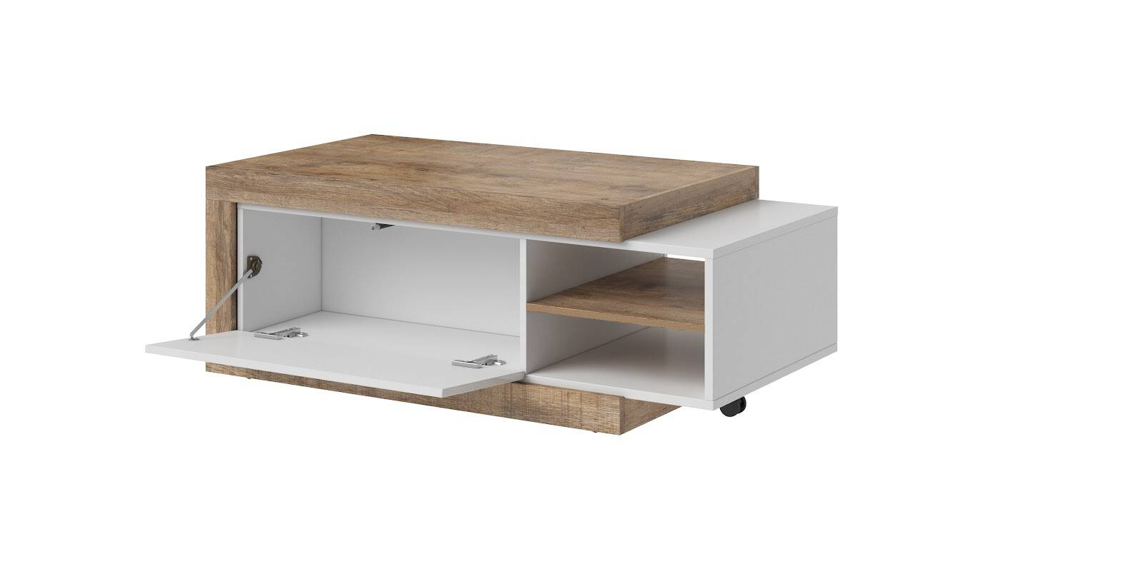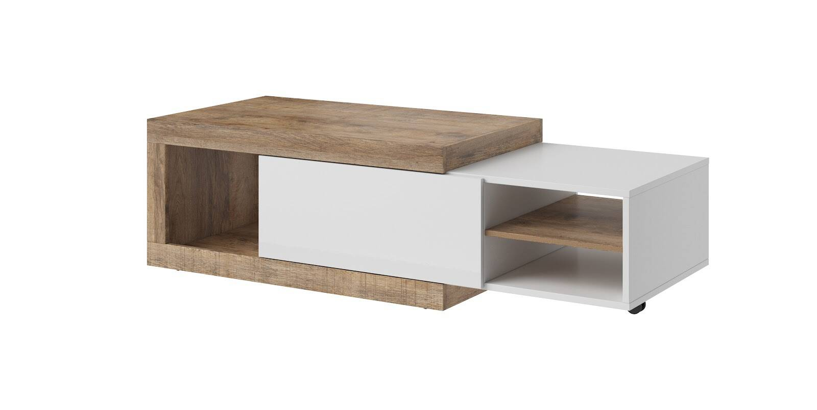 Pristatome jums unikalų „Sintra“ kavos staliuką, kuriame dera modernaus dizaino elegancija ir šilta natūralios medienos tekstūra. Sukurtas garsaus „Helvetia“ prekės ženklo, šis stilingas staliukas bus ne tik naudingas jūsų svetainės papildymas, bet ir dekoratyvinis elementas. Jo matmenys puikiai atitinka šiuolaikinio interjero poreikius: plotis 120 cm, gylis 60 cm ir aukštis 43 cm, todėl jį patogu naudoti ir lengva pritaikyti prie įvairių dydžių kambarių. Balta blizgesio spalva kartu su natūraliais, šiltais „Samdal Oak“ ąžuolo tonais sukuria unikalų efektą, kuris suteiks jūsų namams gaivumo ir elegancijos. Staliukas pagamintas iš aukštos kokybės laminuotos baldų plokštės, užtikrinančios patvarumą ir atsparumą kasdieniam naudojimui. Be to, jis turi praktišką lentyną, kurioje galite susidėti žurnalus, nuotolinio valdymo pultelius ir smulkius aksesuarus. „Sintra“ taip pat yra ištraukiamas staliukas, suteikiantis daugiau vietos socialiniams susibūrimams ar šeimos vakarienėms.